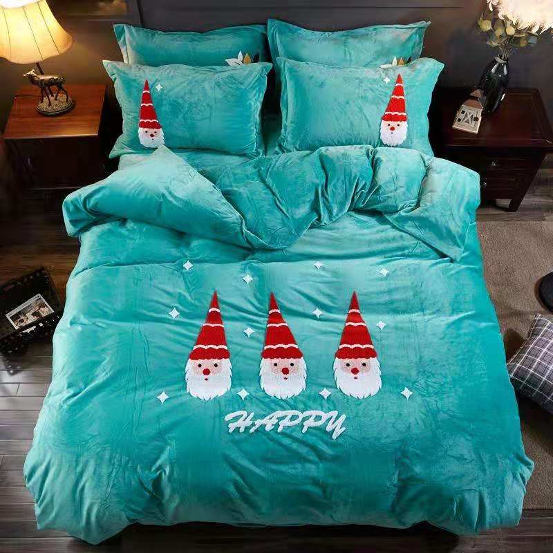- 水晶绒毛巾绣四件套舒适亲肤冬日保暖圣诞老人草绿