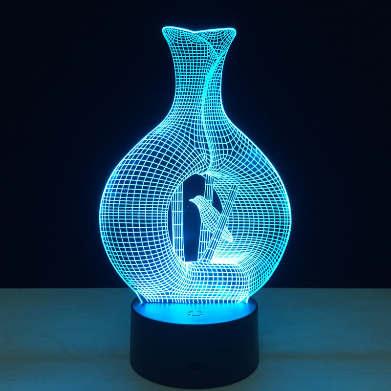 跨境专供 花瓶创意3D小夜灯LED台灯USB灯氛围礼品 立体视觉灯623