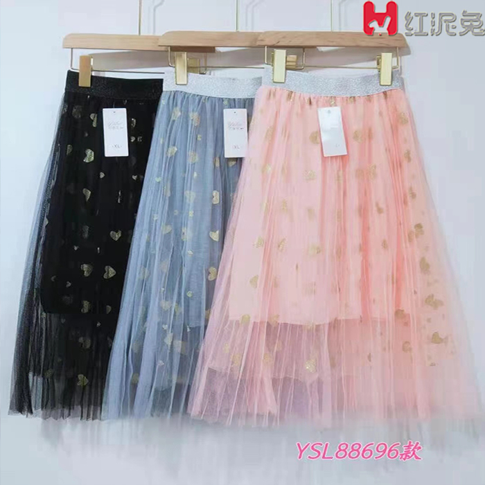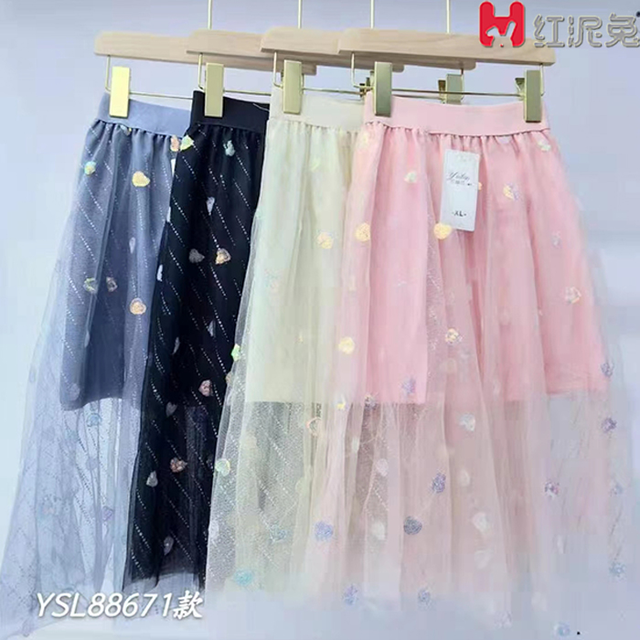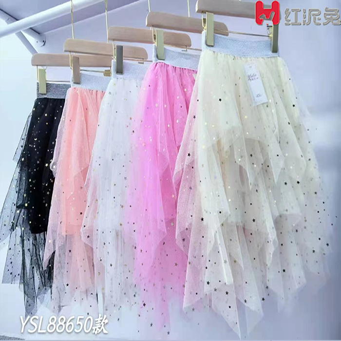 女童半身裙中长款春夏款中大童洋气百褶星空裙亲子装长裙网纱裙子