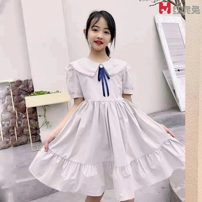 夏季新款连衣裙时尚纯色公主蓬蓬裙网红时尚小女孩清新连衣裙
