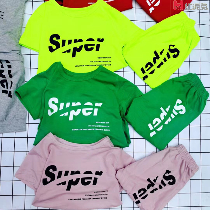 儿童夏季运动套装件套短袖两男童女童装厂家直销套装韩版