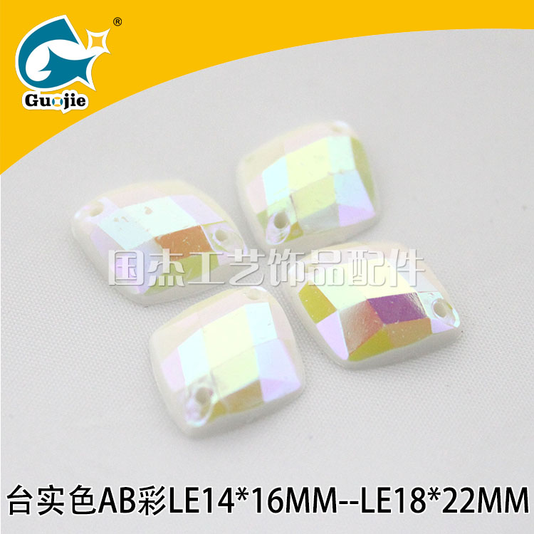 - 台AB实色LE9*16-格面棱形两头尖双孔石 钉珠花辨饰品配件