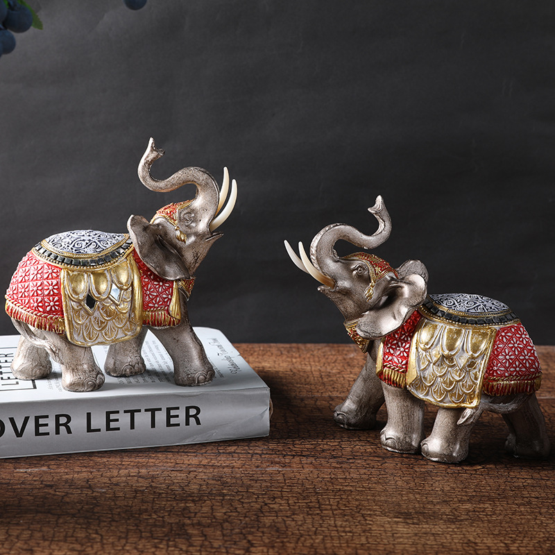 欧式树脂工艺品家居装饰玄关客厅酒柜隔板摆设复古象摆件新房礼品
