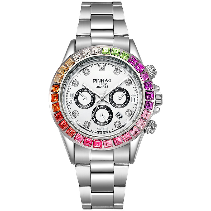2021新款彩虹钻热销手表满钻时尚ins风防水中性石英日历手表