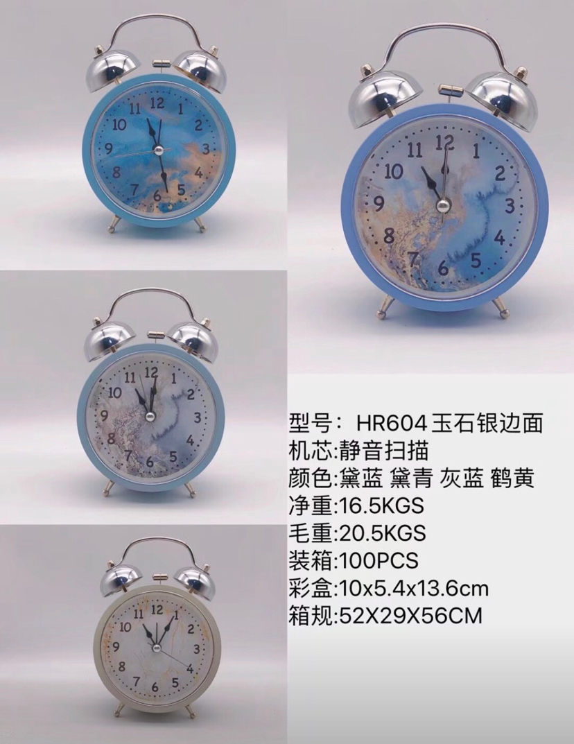 - 604玉石银边面,静音扫描铁打铃闹钟
