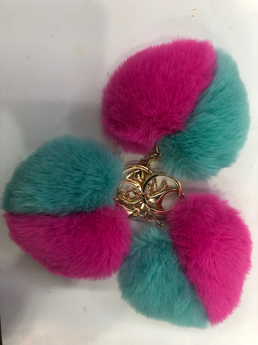 - 新款桃心型兔毛拼色毛球挂件手机包包钥匙扣挂饰品配件