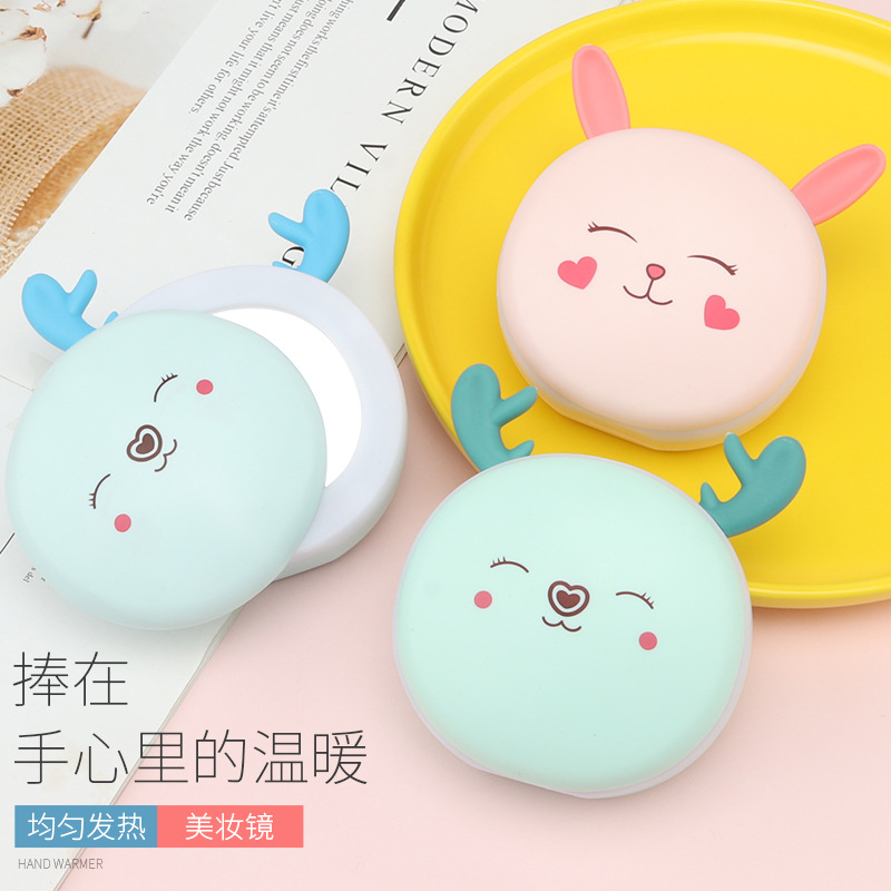 卡通充电暖手宝美妆灯美妆镜迷你便携式USB冬季发热暖宝宝补光灯