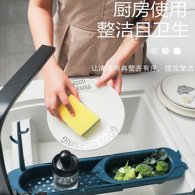 抖音同款调节厨房水槽抹布架沥水篮水池用品置物架洗碗伸缩收纳架