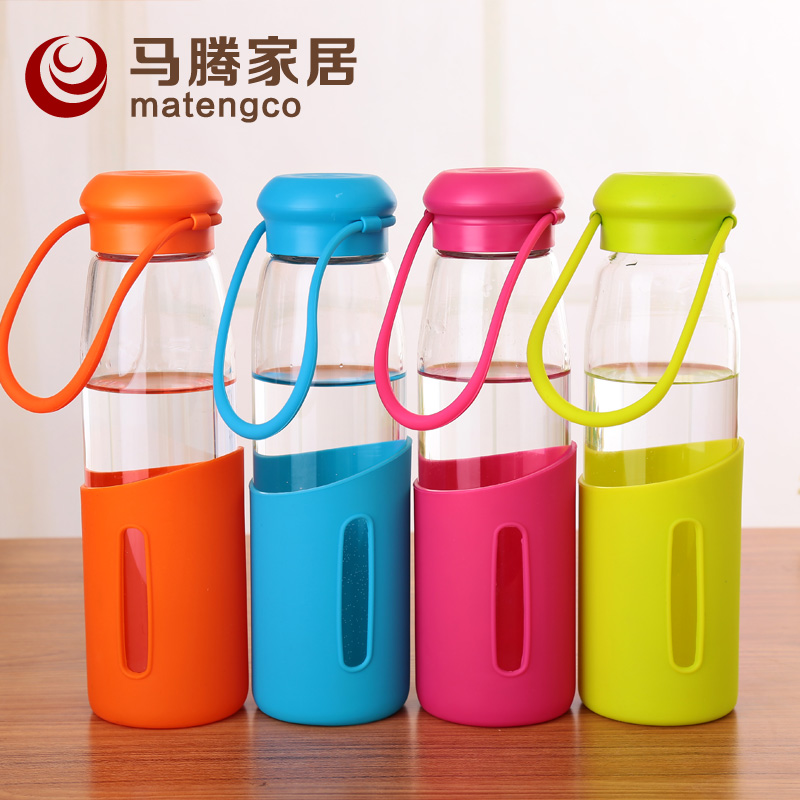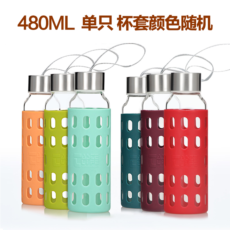 - 陶煲王创意玻璃水杯硅胶玻璃水瓶带手提带子泡茶防滑杯