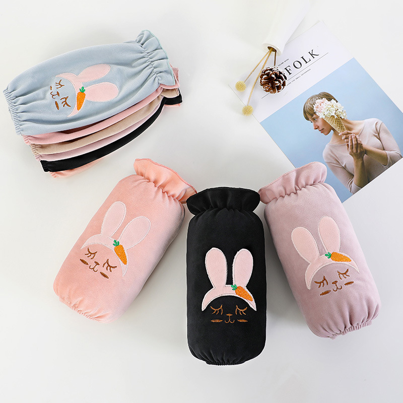 冬季女士兔耳朵短款绣花绒布袖套学生卡通小兔可选色套袖护袖