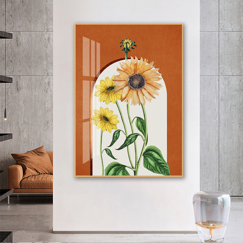 - 玄关欧式简约向日葵时尚创意装饰画竖版挂画走廊墙面壁画晶瓷画