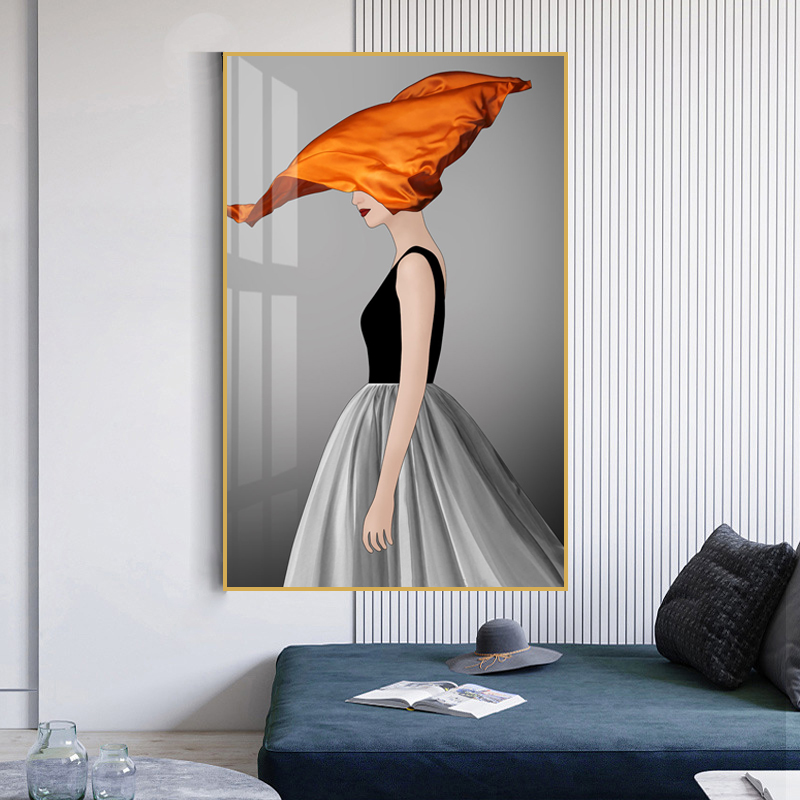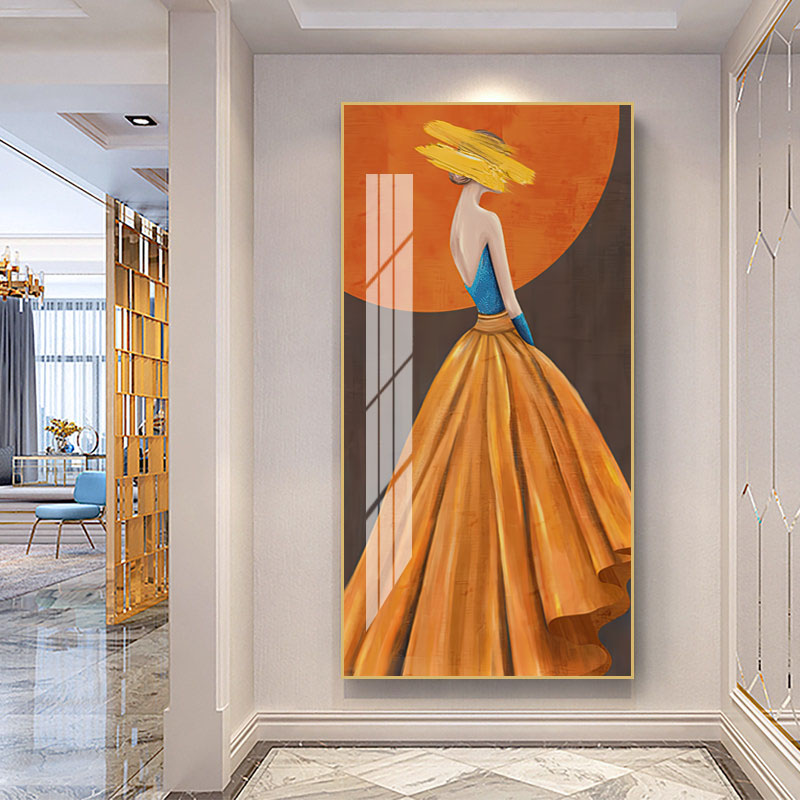 - 北欧简约美女图案玄关装饰画家居背景墙客厅挂画轻奢晶瓷工艺壁画