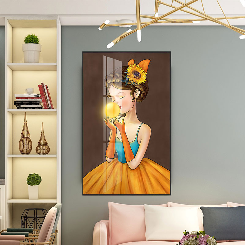 - 童趣儿童房间装饰画泡泡女孩图案卡通画入户走廊挂画高清晶瓷壁画