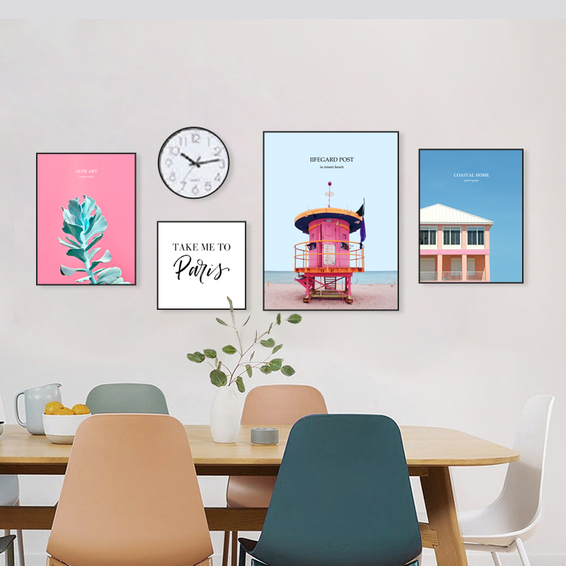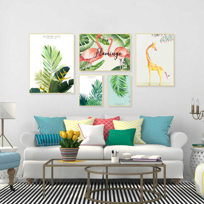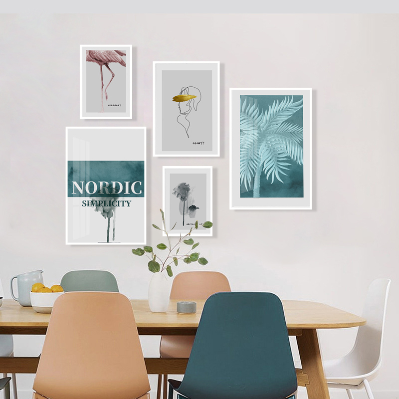 - 北欧ins简约客厅小清新花卉装饰画现代英文绿植组合五联卧室挂画