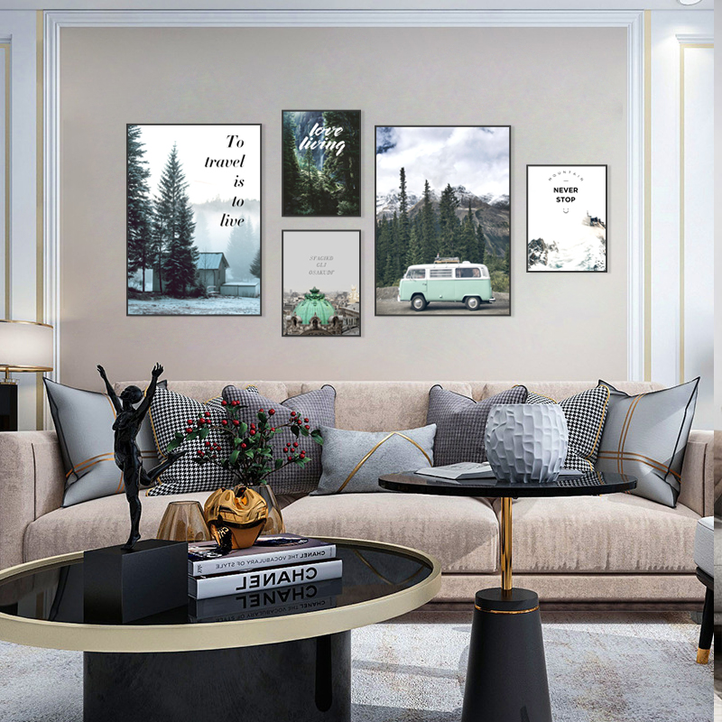 - 高清喷绘旅行风景组合装饰画清新文艺壁画家居美式墙面装饰画