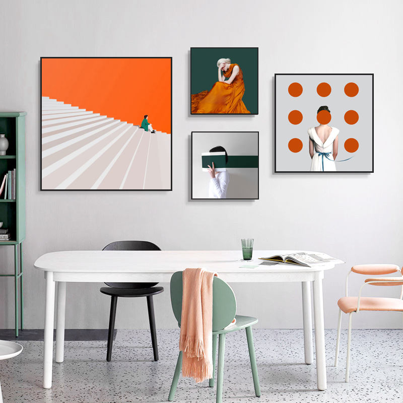 - 北欧简约小众抽象人物客厅组合装饰画卧室床头挂画服装店壁画墙画