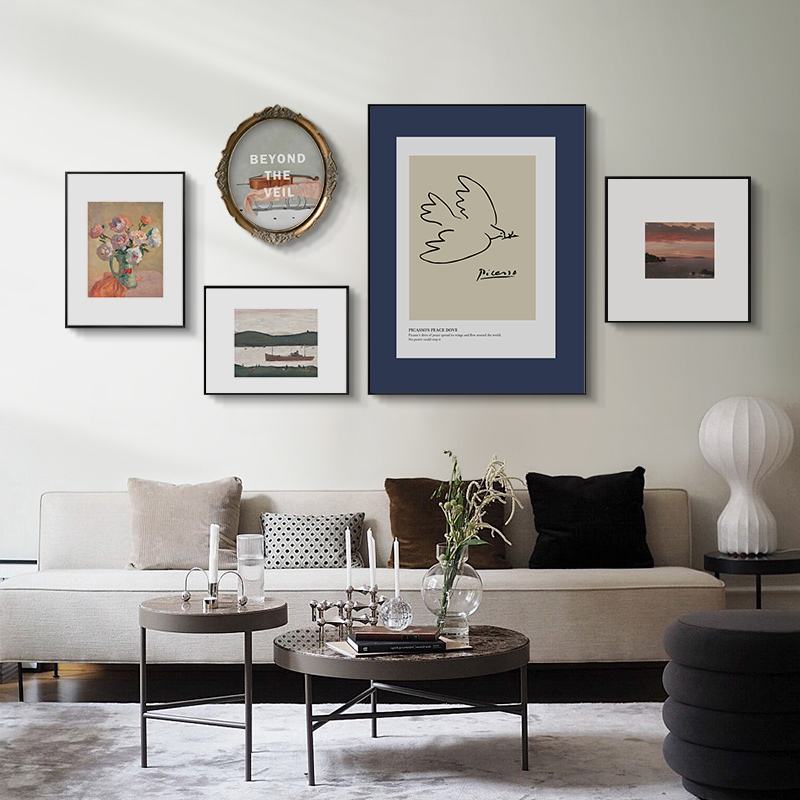 - 文艺复古小清新客厅背景墙现代简约抽象轻奢装饰画卧室餐厅组合画