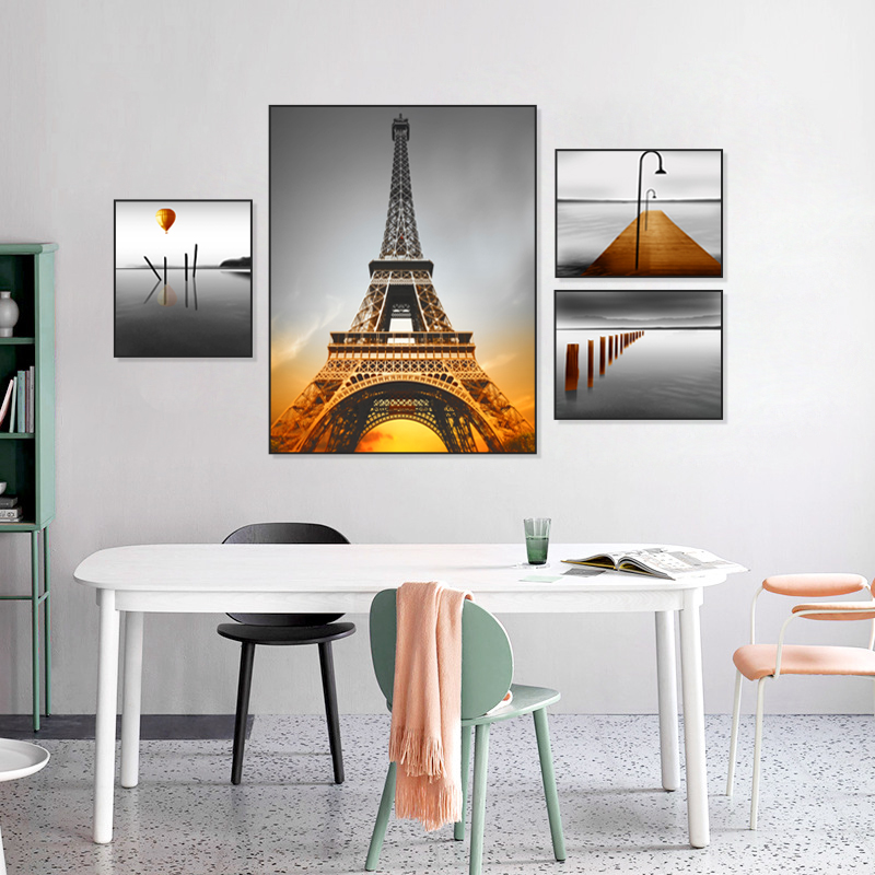 - 欧式家居客厅温馨风景图片组合拼贴墙面装饰画大厅墙壁组合装饰