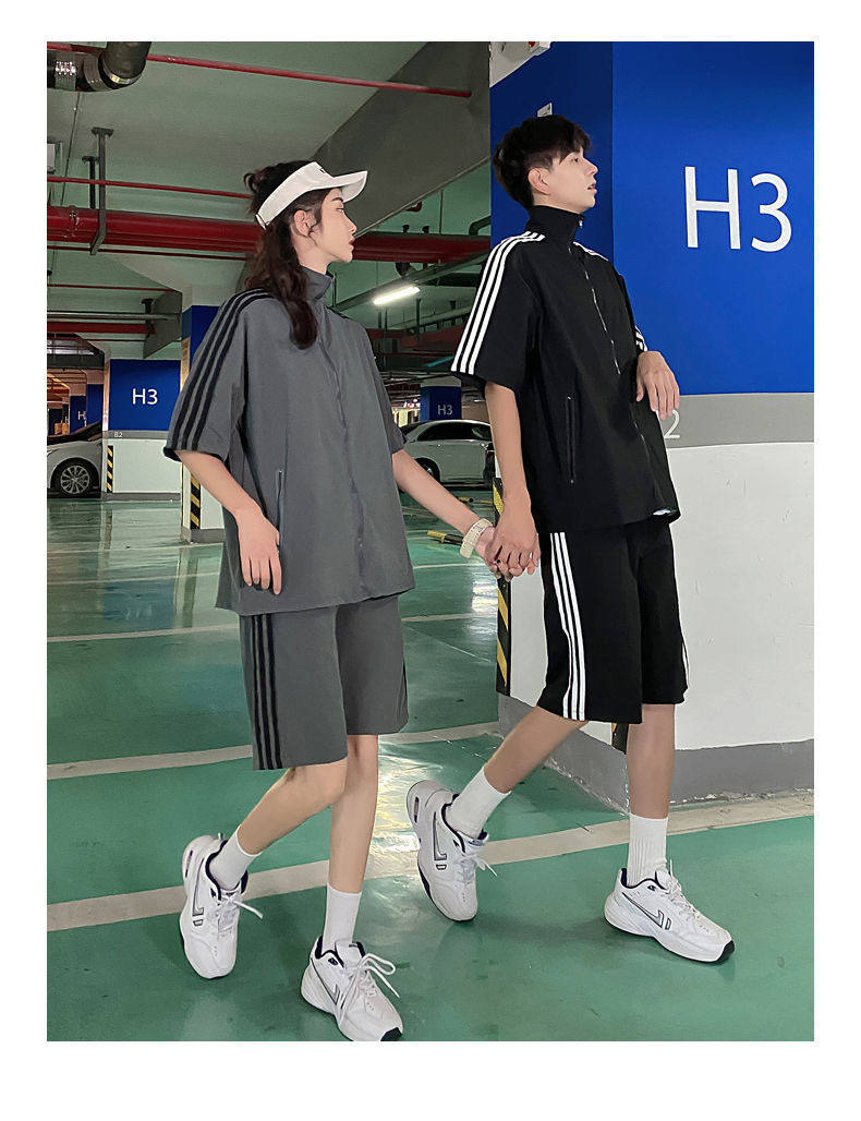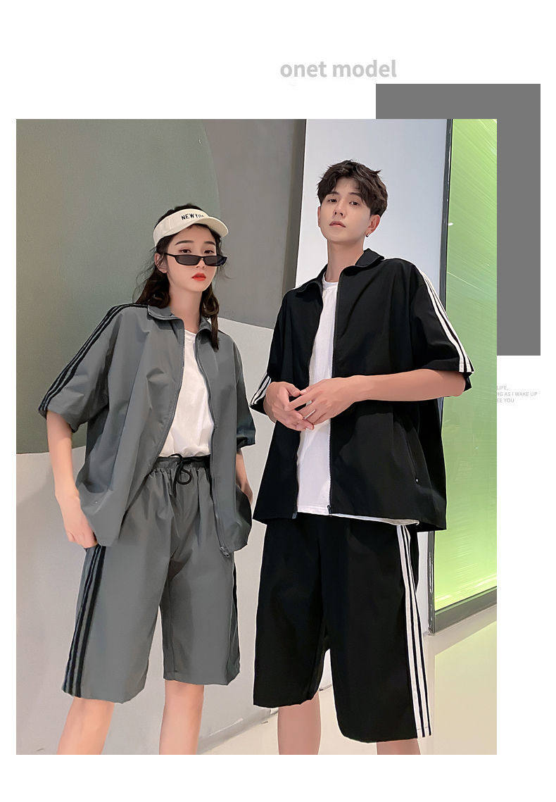 2021夏季新款新型蚂蚁皱布料短袖短裤潮流印花运动时尚休闲套装男