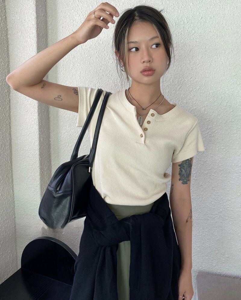 螺纹白开领T恤尺寸