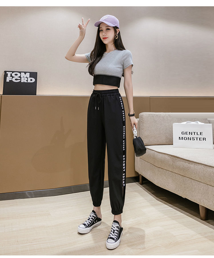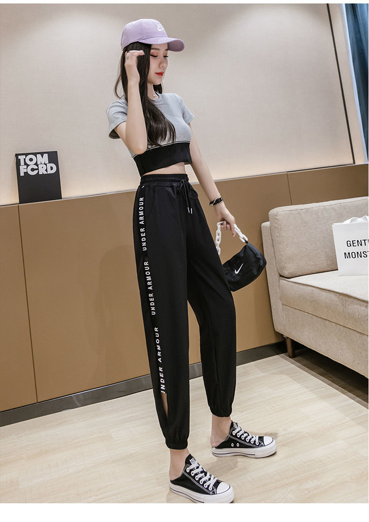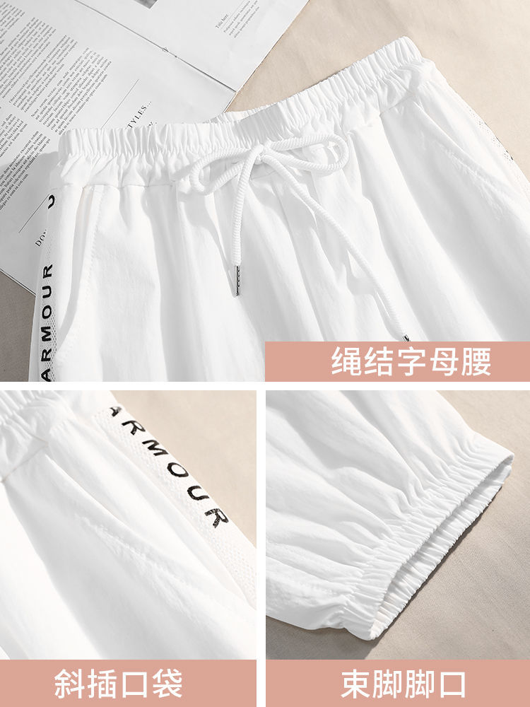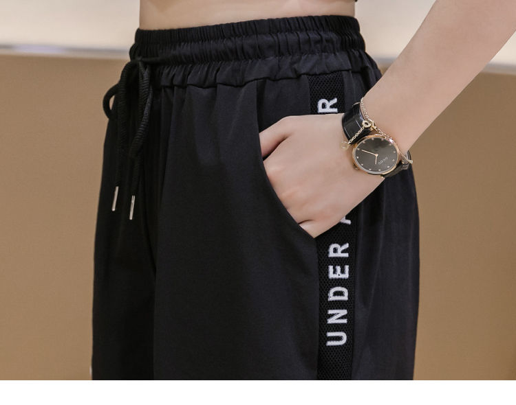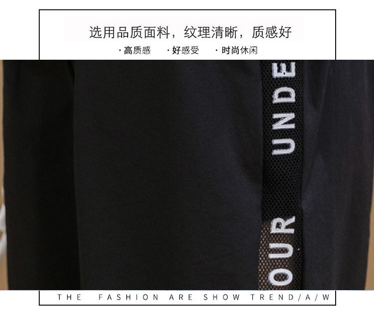 2021男式柔软布料中腰休闲现货青少年黑色字母弹力裤休闲裤五分裤