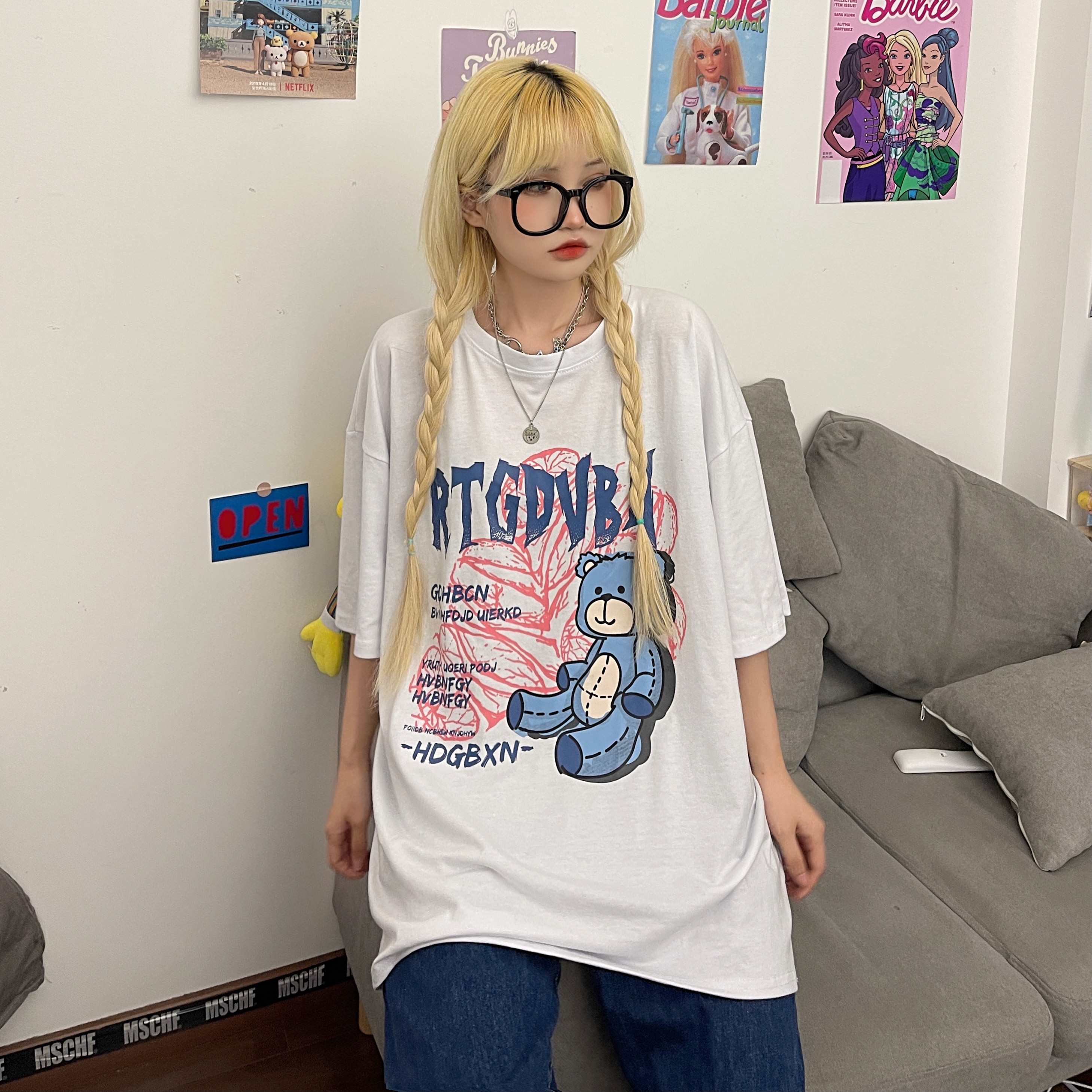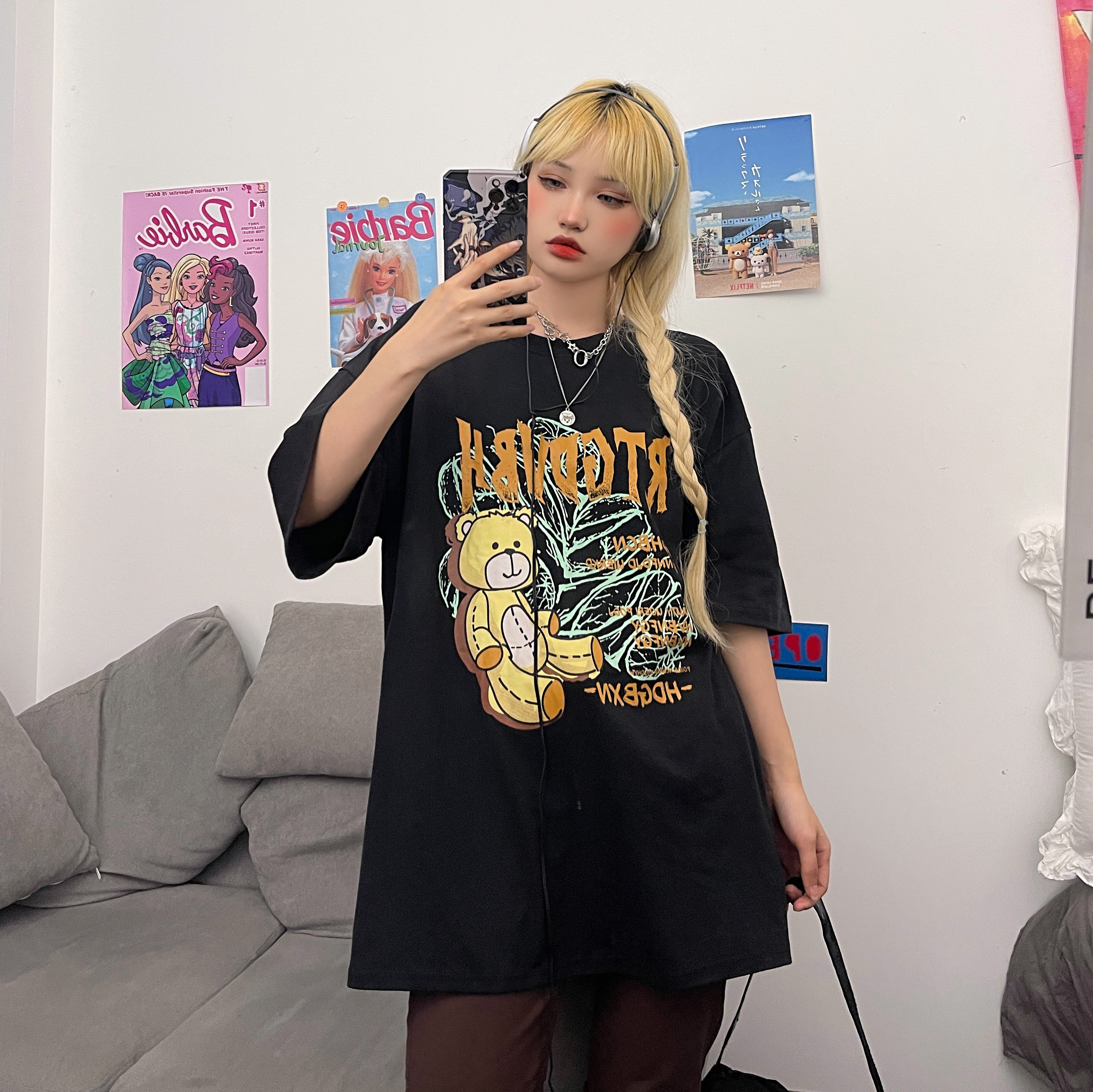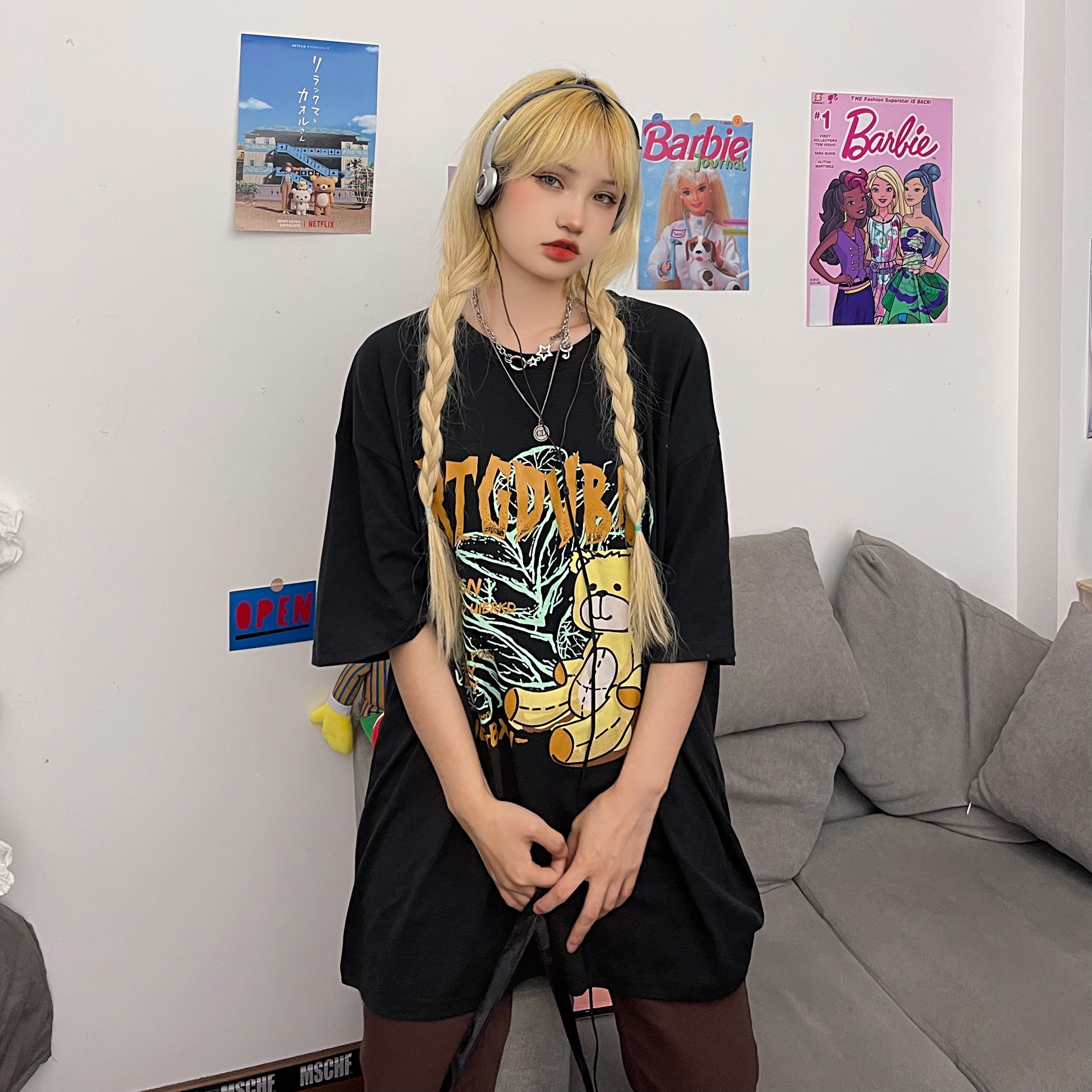 - 服装版型:宽松