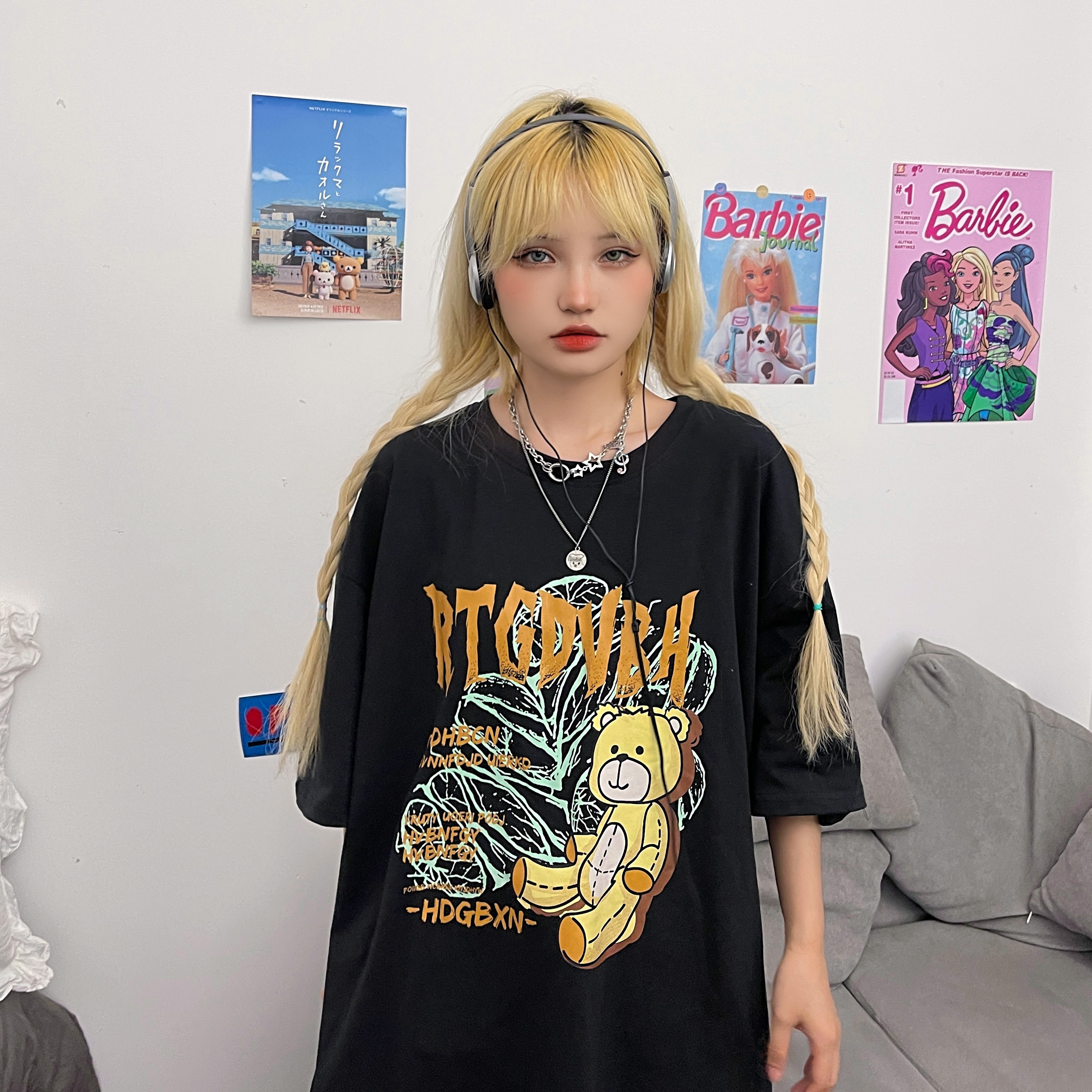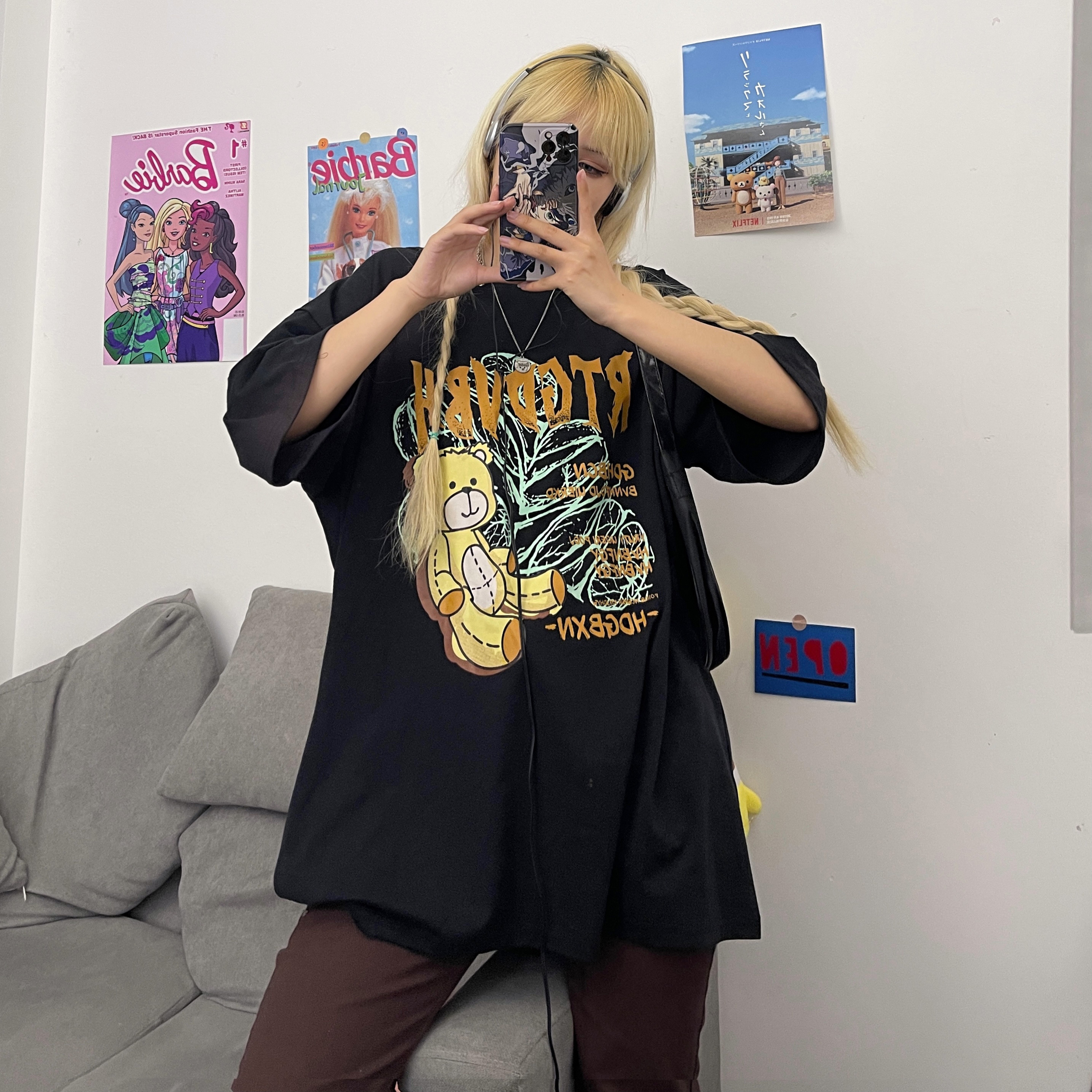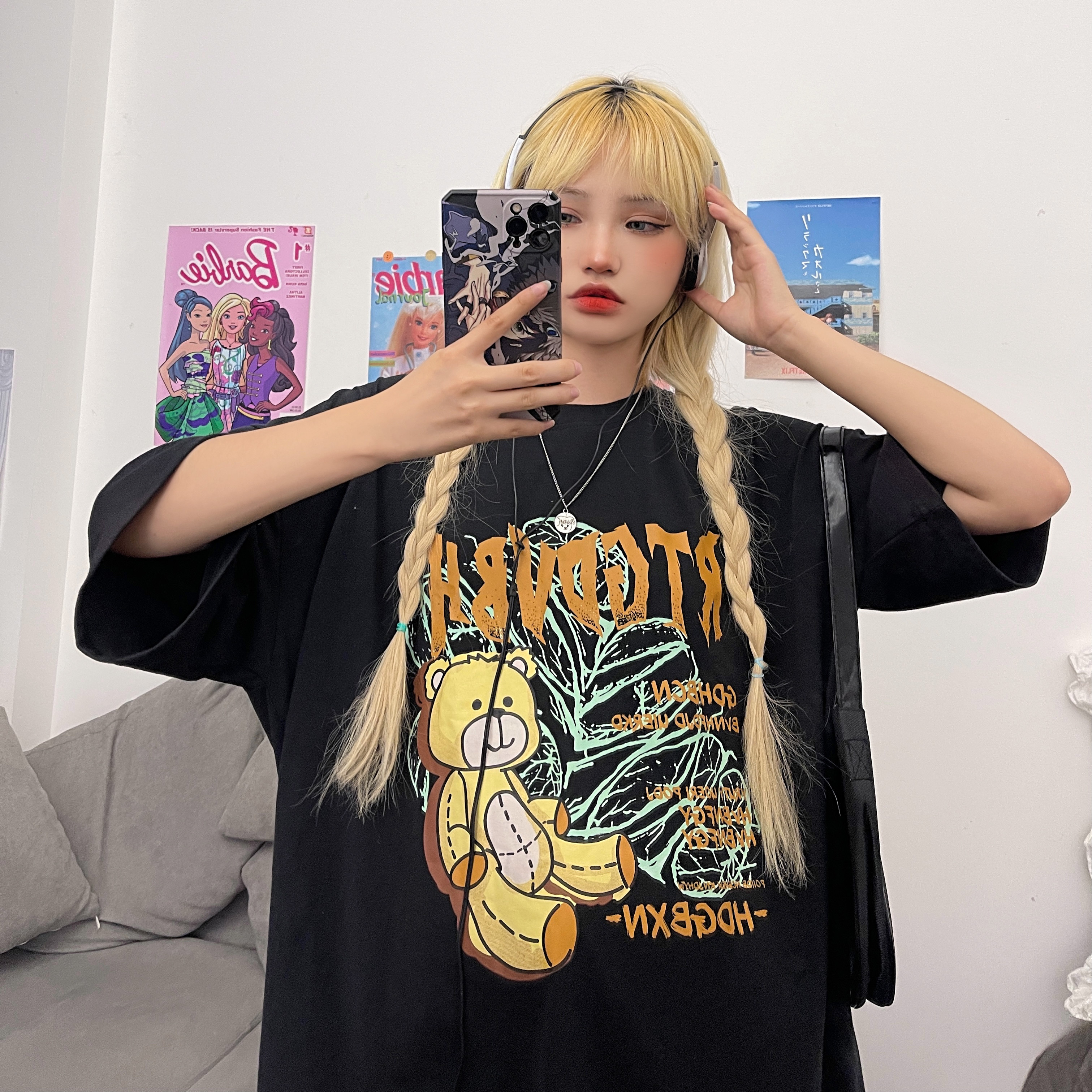 - 服装版型:宽松