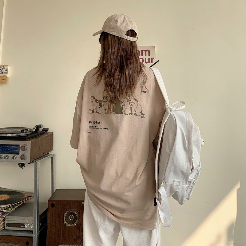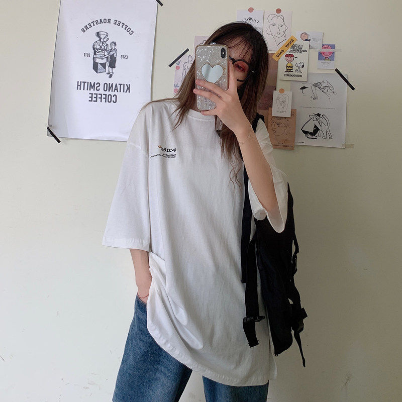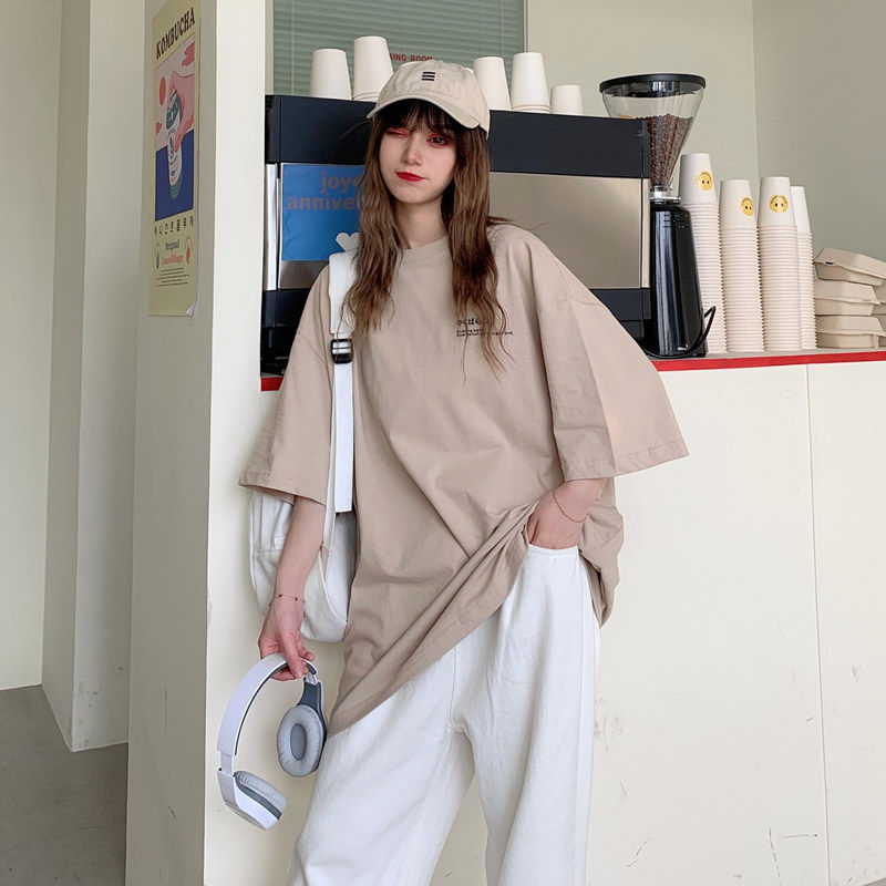 夏季2021新款短袖t恤男士潮牌韩版潮流宽松圆领棉布料好搭衣服