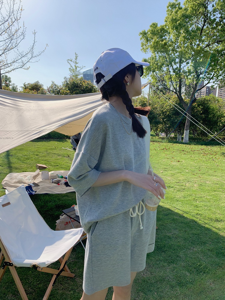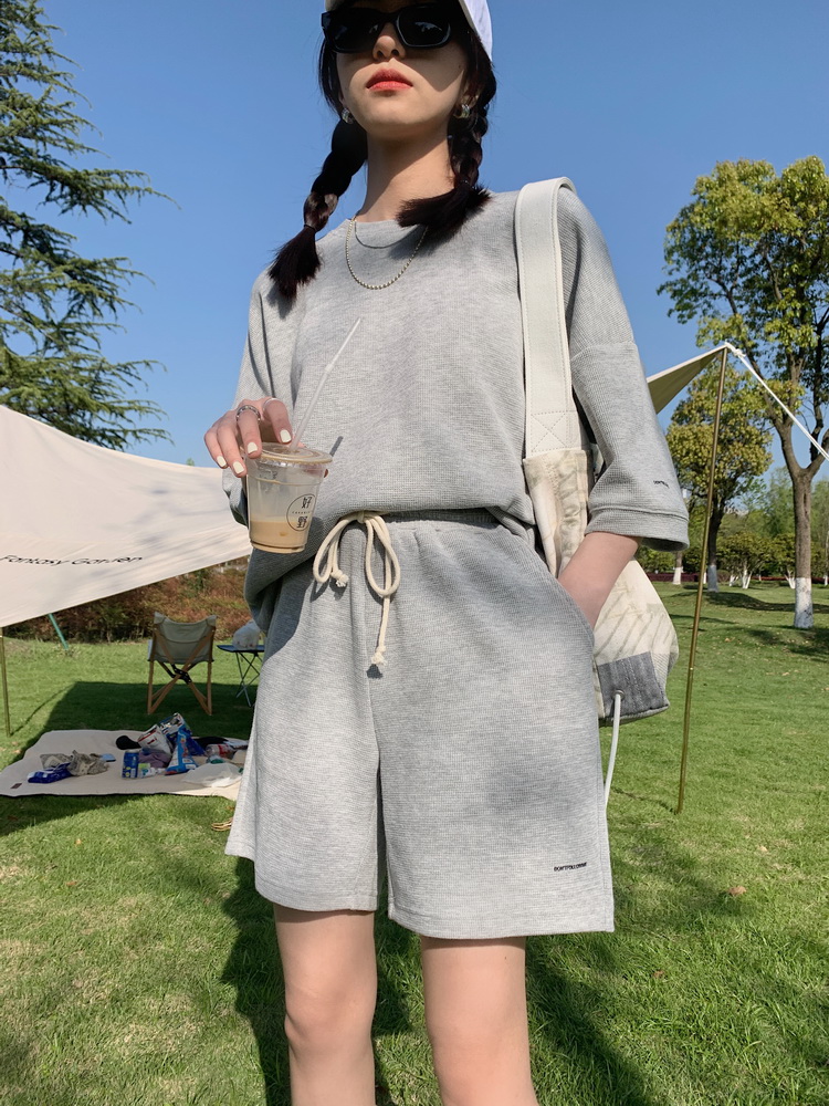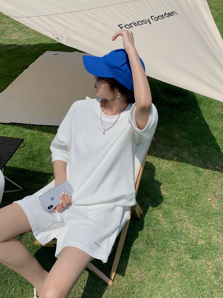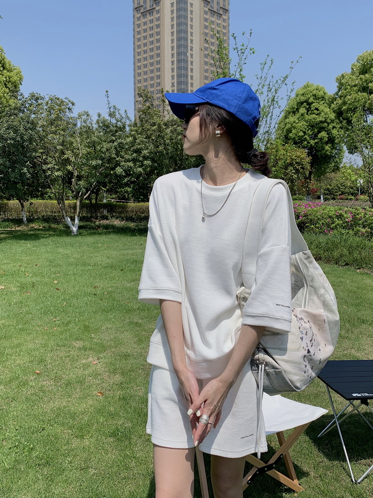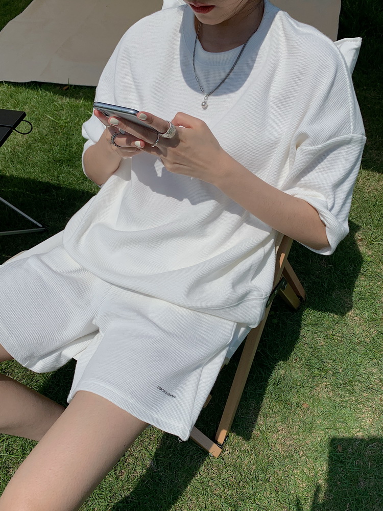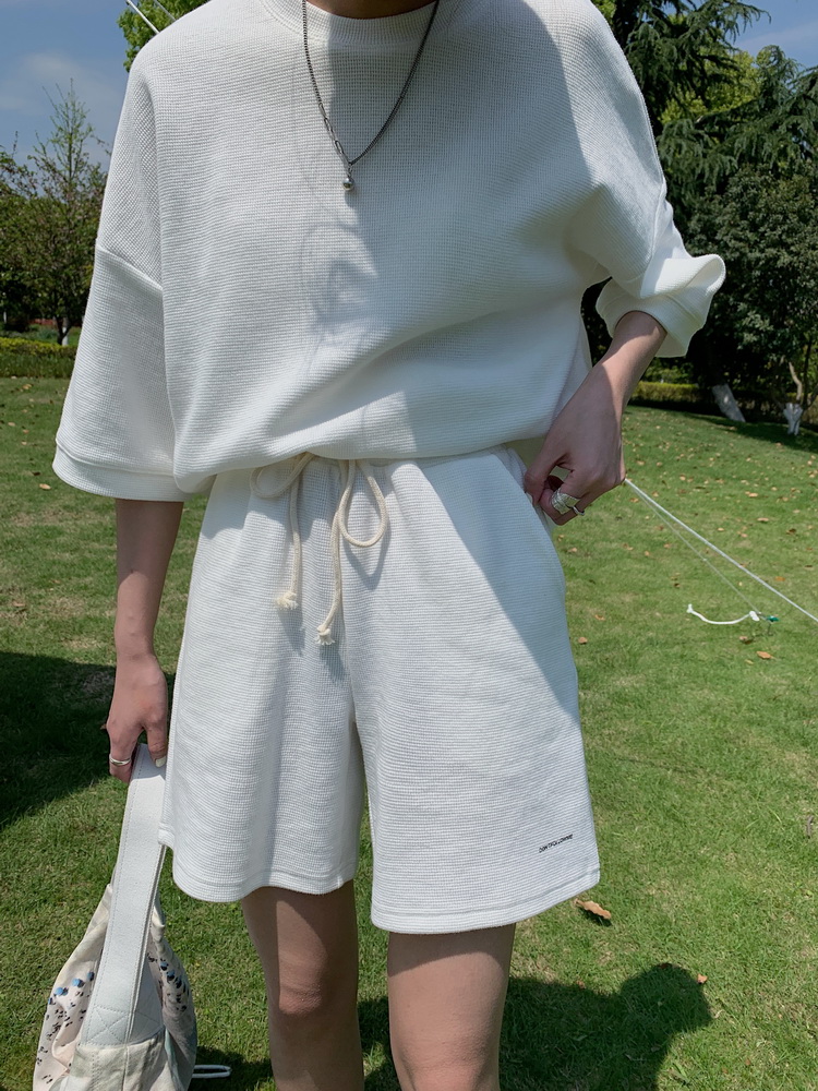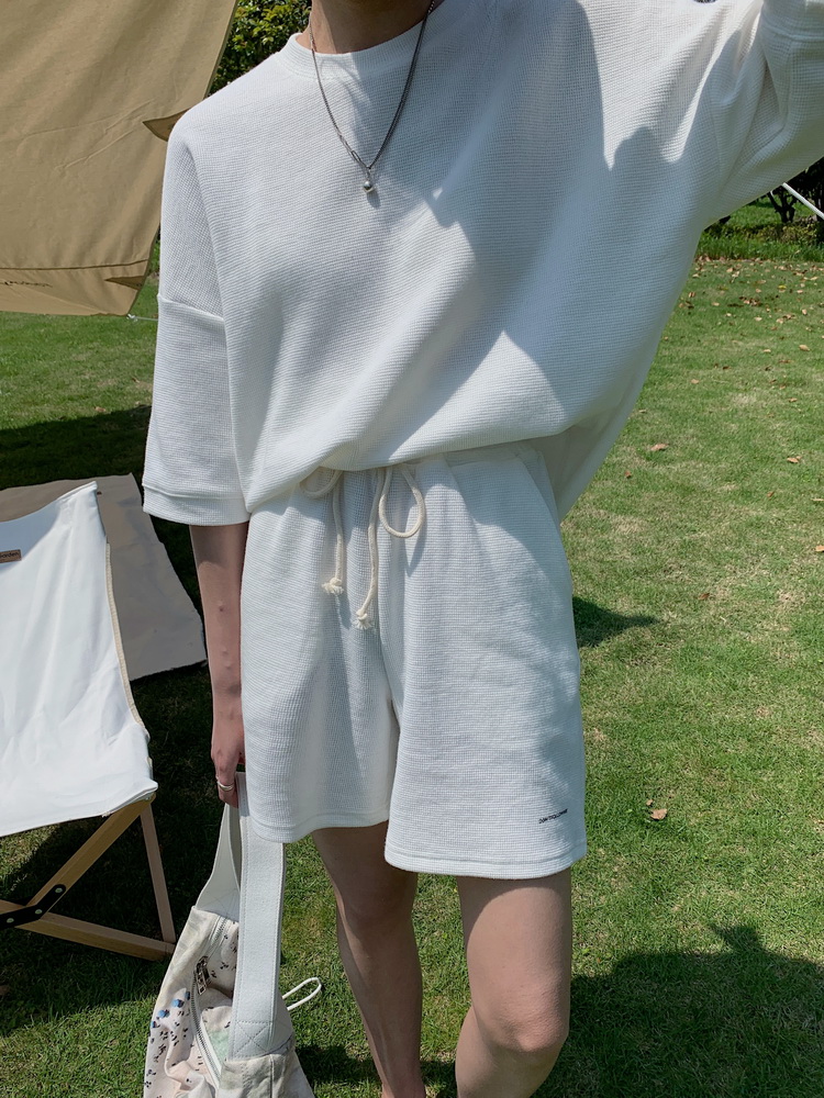 2021夏季新款新型蚂蚁皱布料短袖短裤潮流印花运动时尚休闲套装男