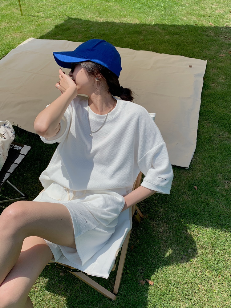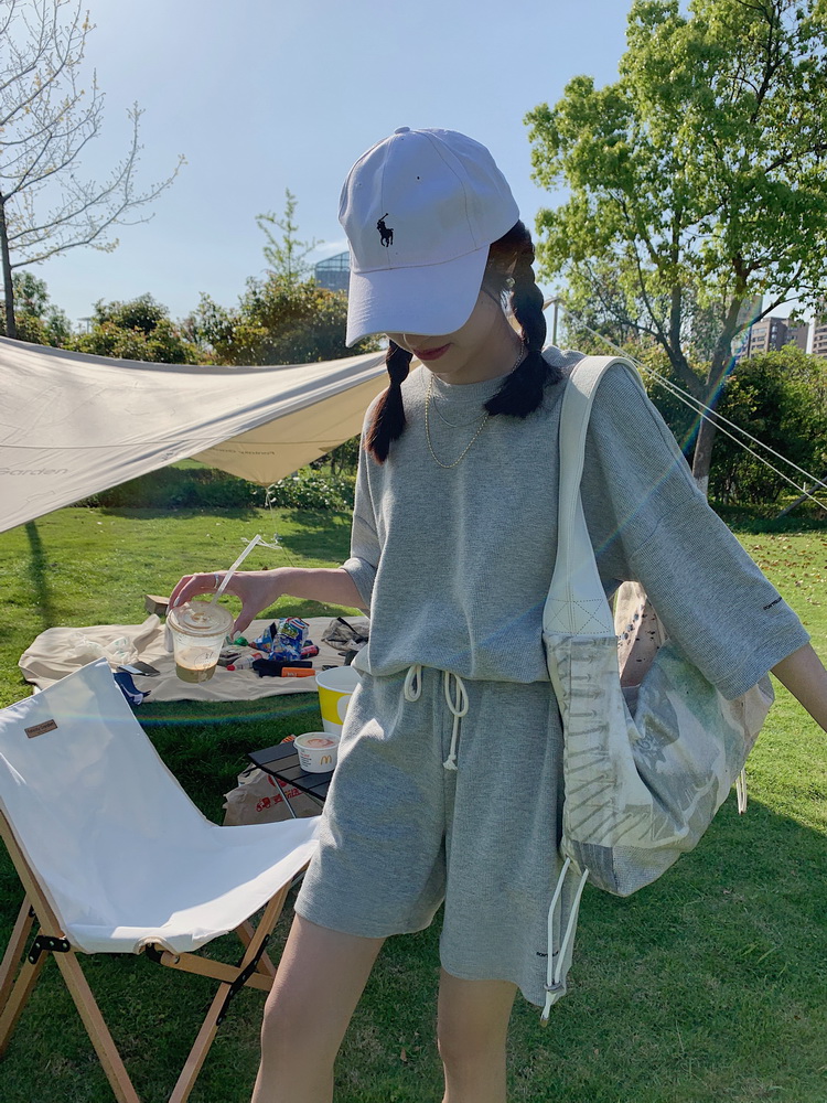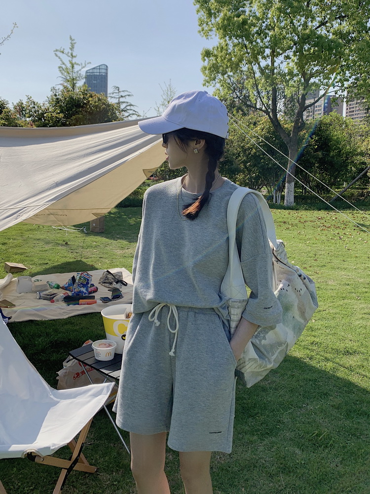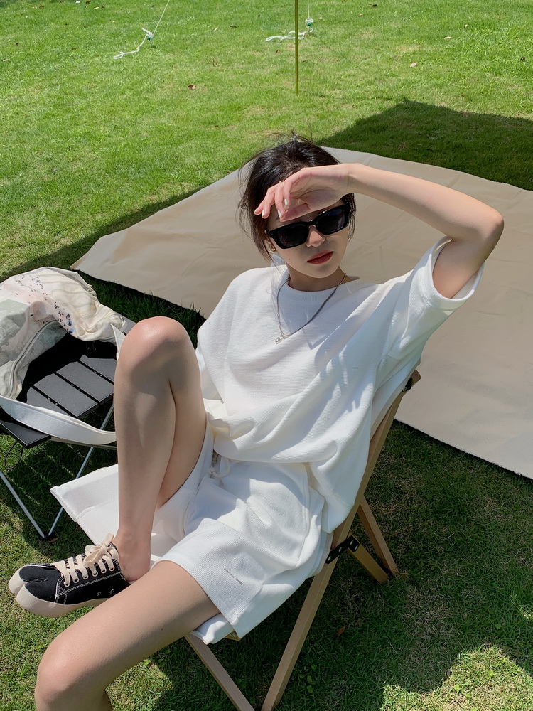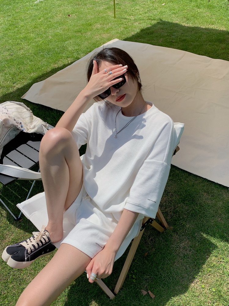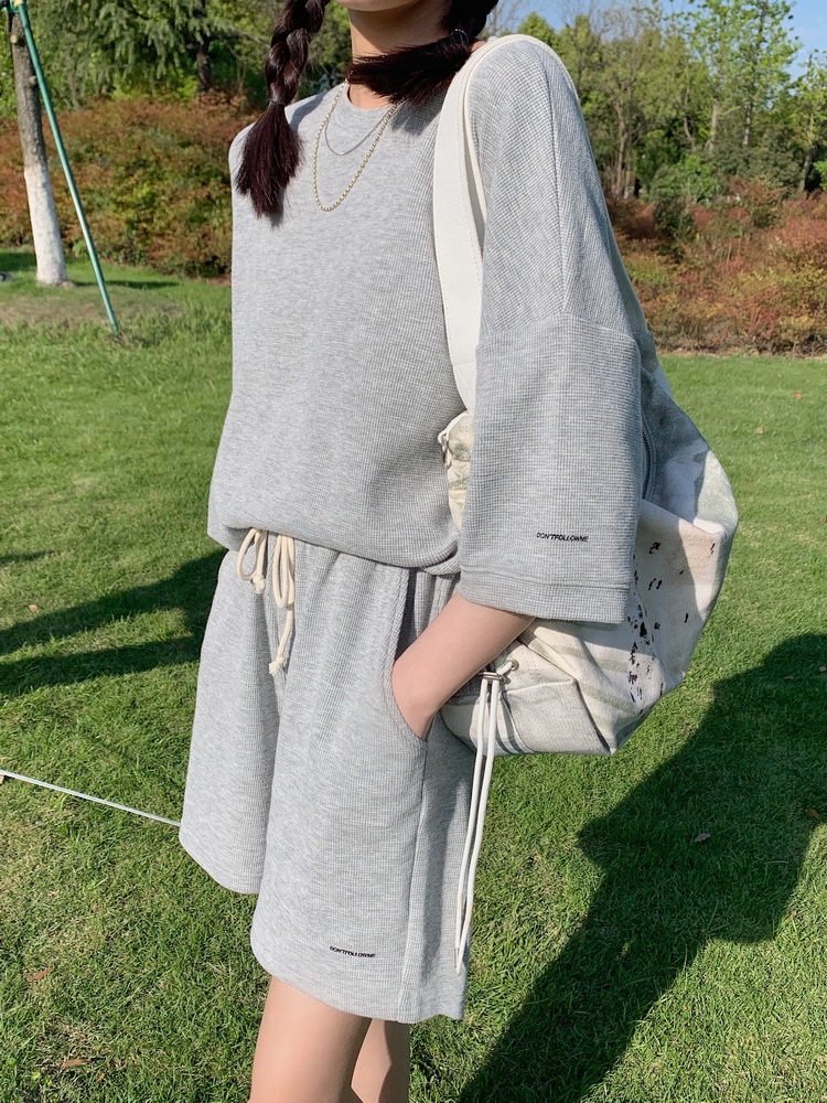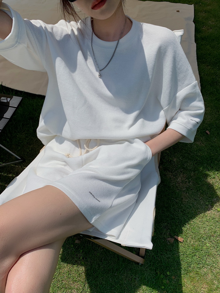 2021夏季新款新型蚂蚁皱布料短袖短裤潮流印花运动时尚休闲套装男