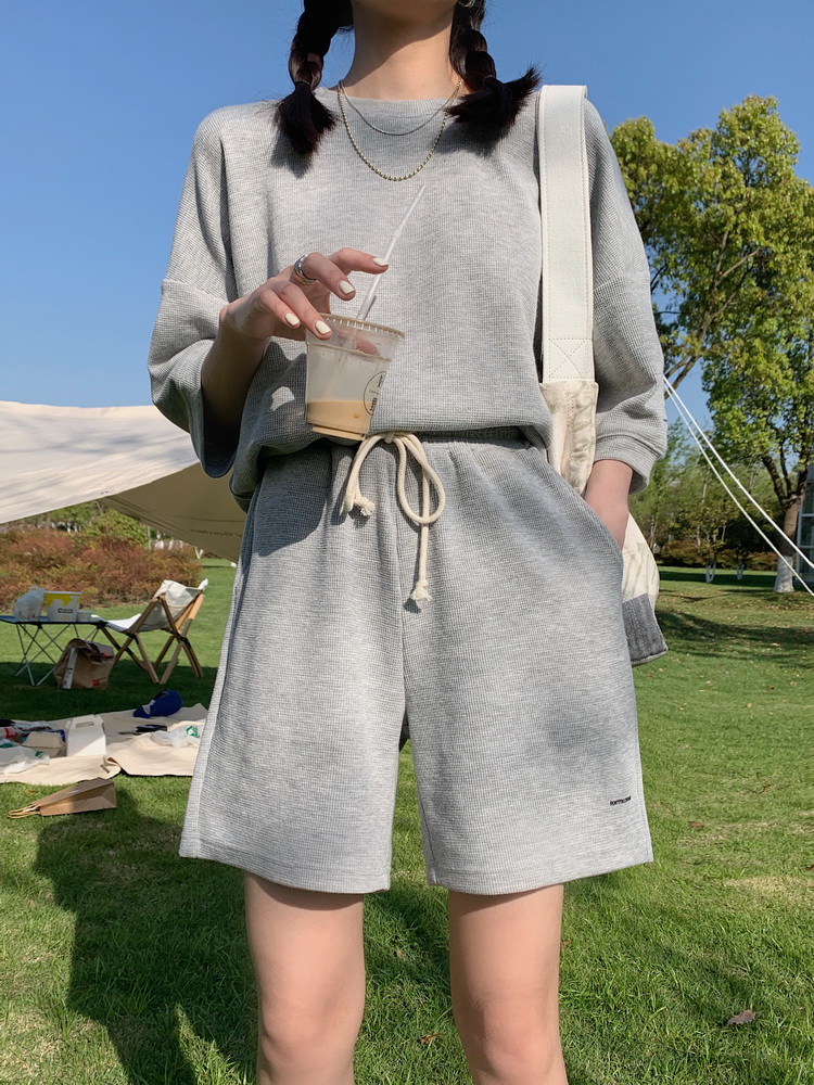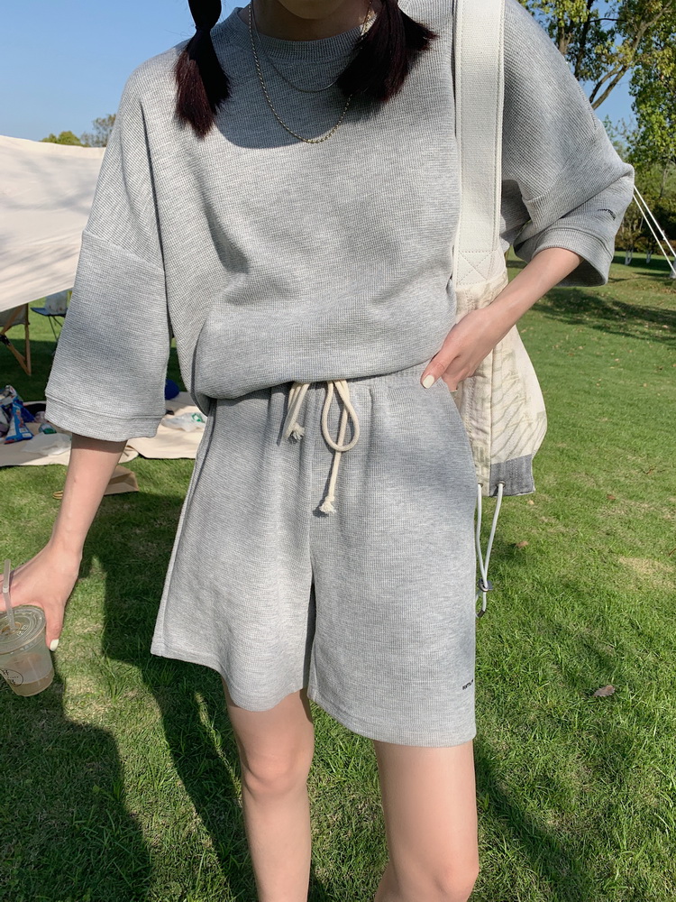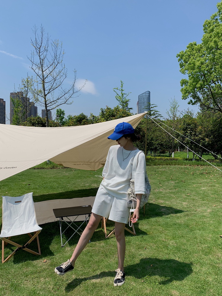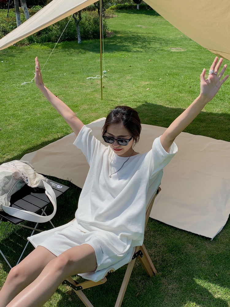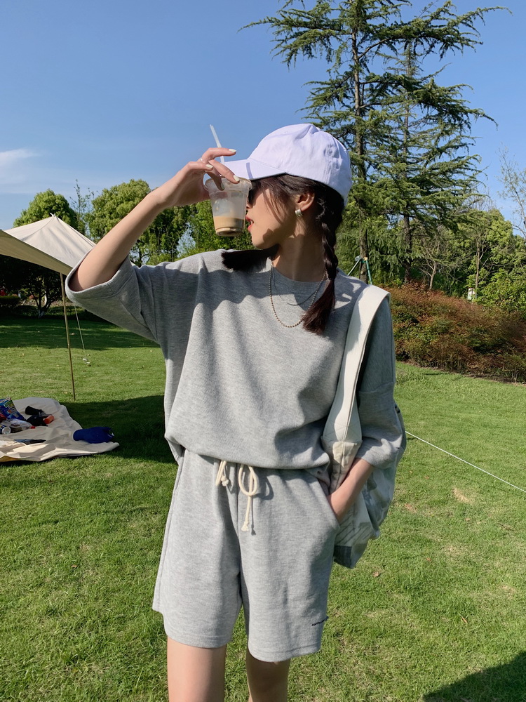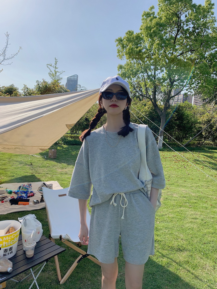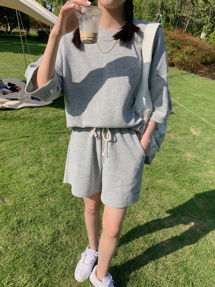 2021夏季新款新型蚂蚁皱布料短袖短裤潮流印花运动时尚休闲套装男