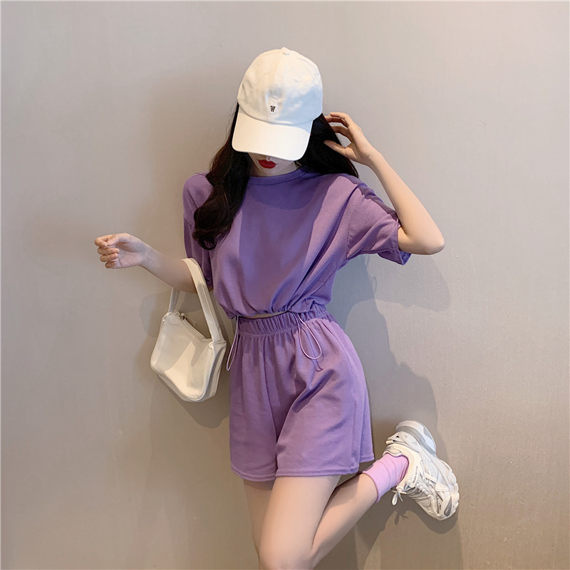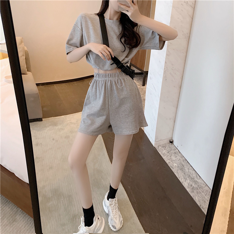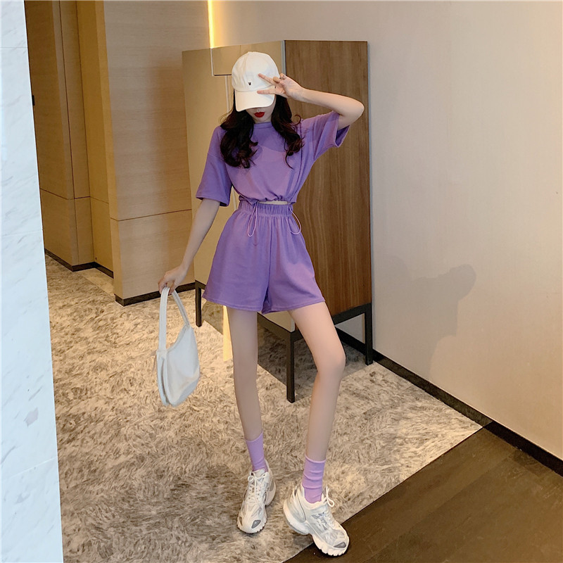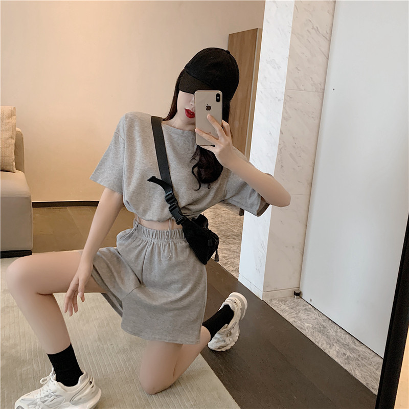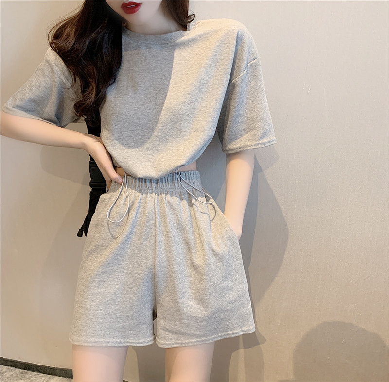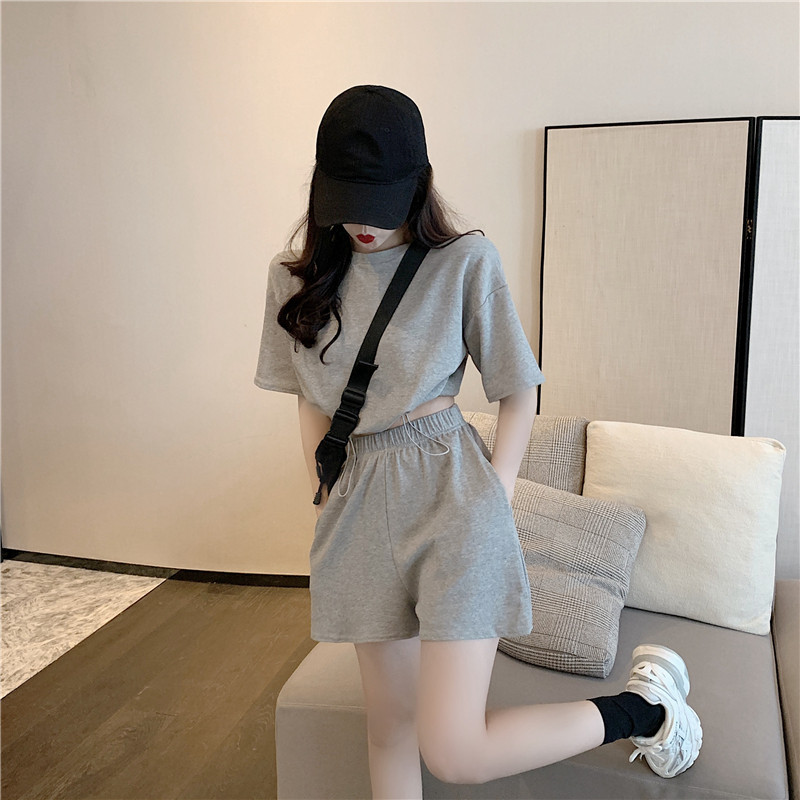 2021夏季新款新型蚂蚁皱布料短袖短裤潮流印花运动时尚休闲套装男