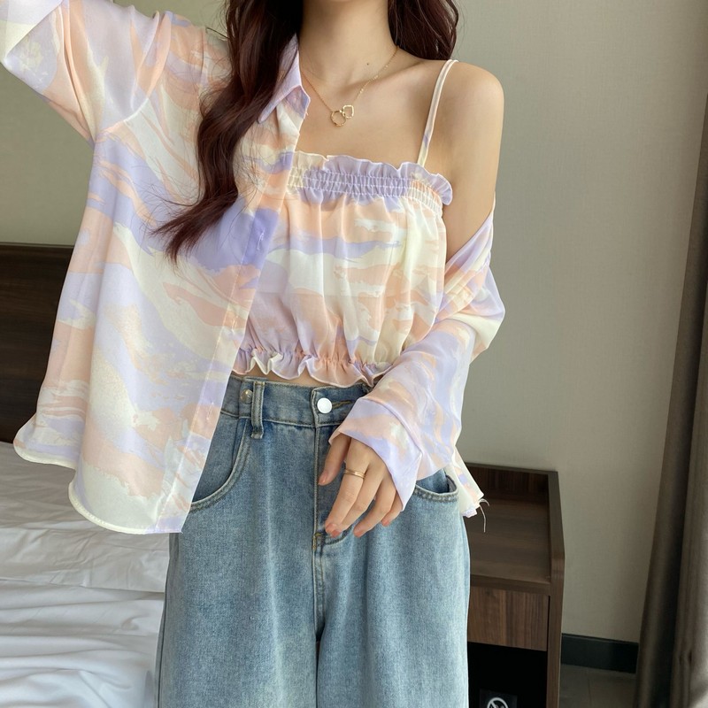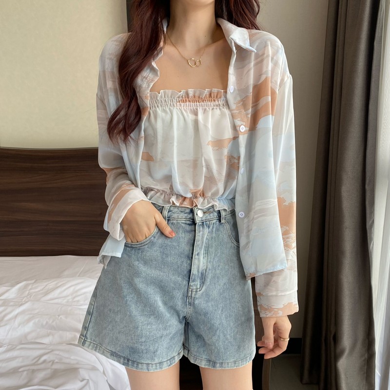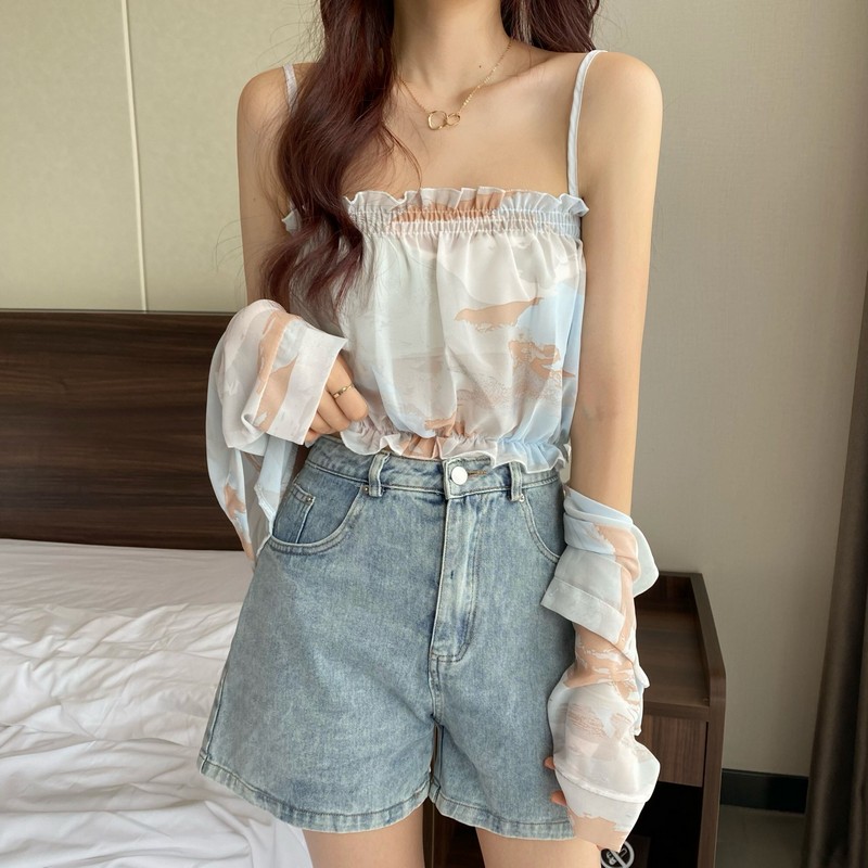 短裤男夏季潮流宽松休闲直筒运动裤韩版港风扎染迷彩男装五分裤子