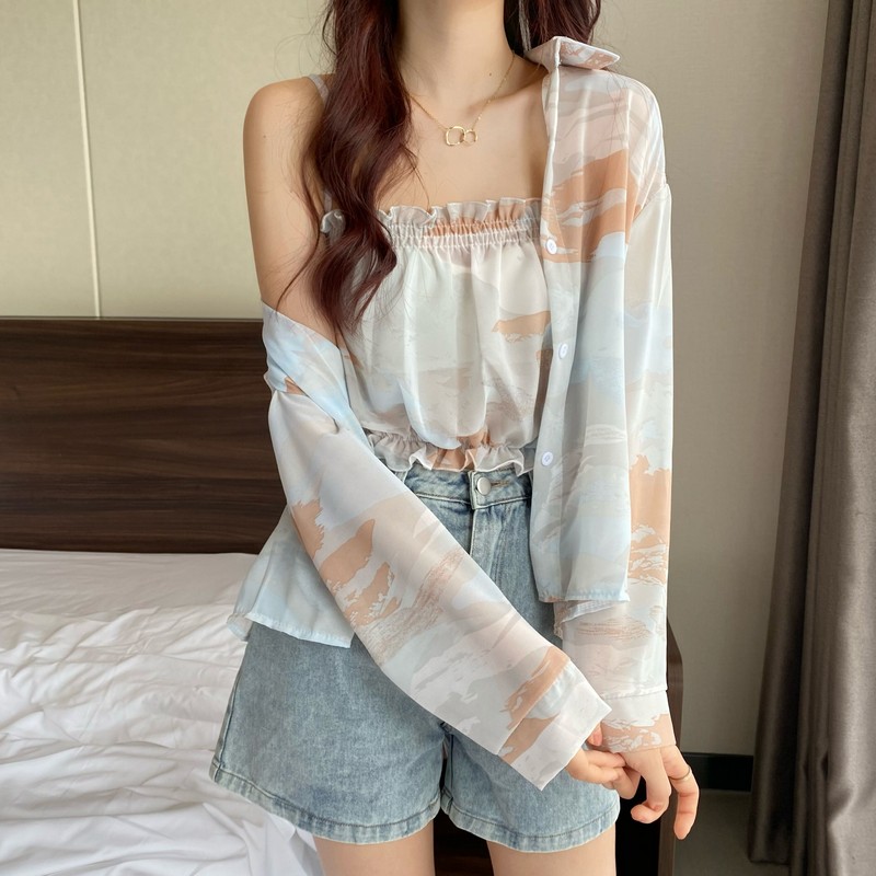 2021夏季新款新型蚂蚁皱布料短袖短裤潮流印花运动时尚休闲套装男