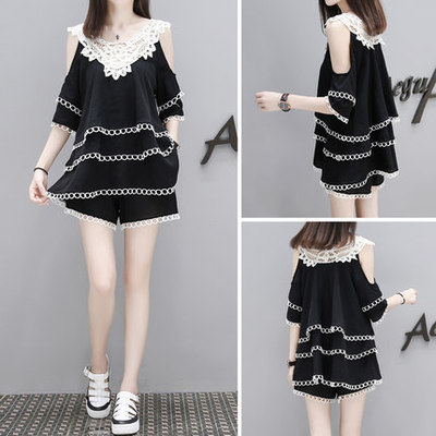 2021夏季新款新型蚂蚁皱布料短袖短裤潮流印花运动时尚休闲套装男