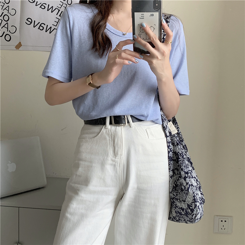 夏季2021新款短袖t恤男士潮牌韩版潮流宽松圆领棉布料好搭衣服