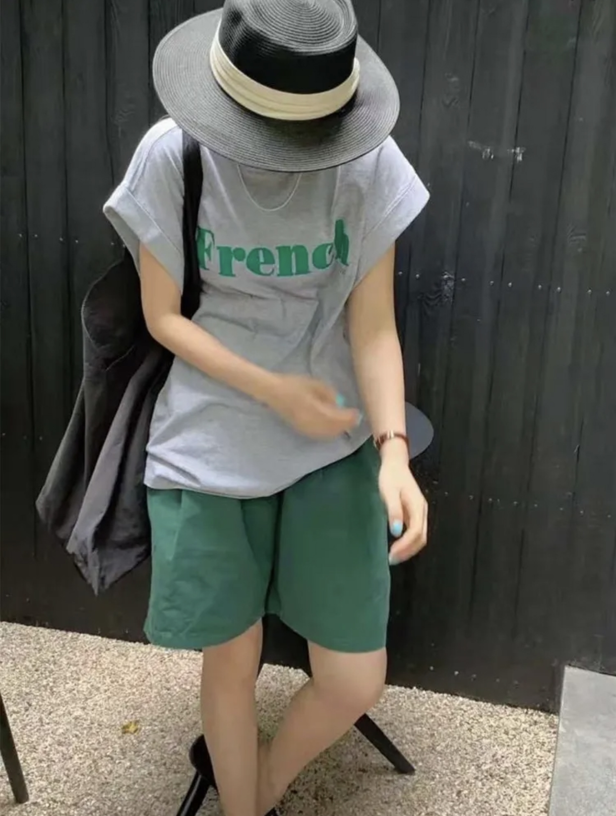 2021夏季新款新型蚂蚁皱布料短袖短裤潮流印花运动时尚休闲套装男