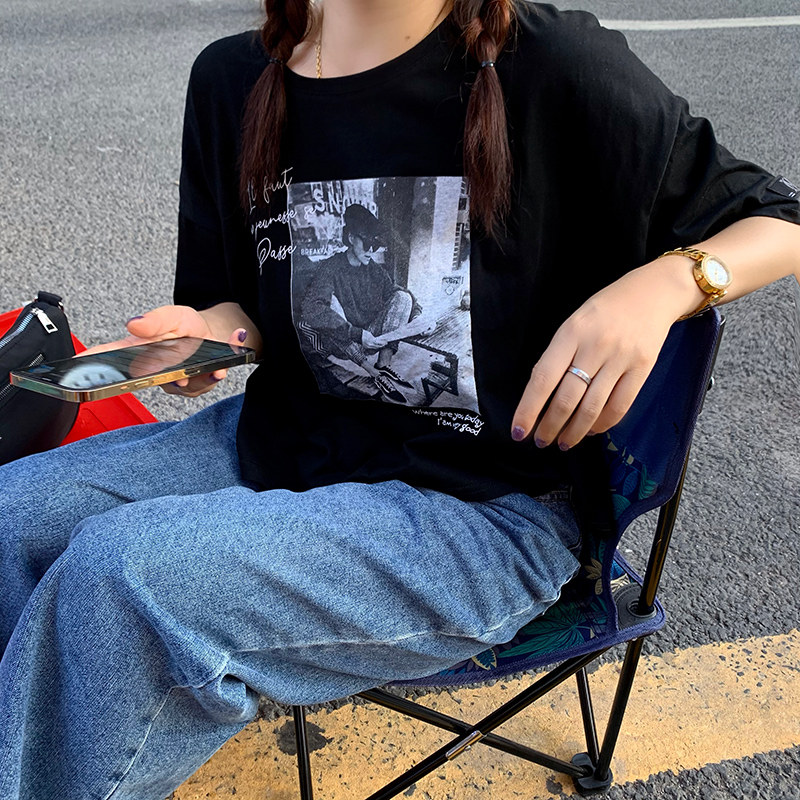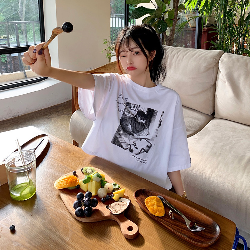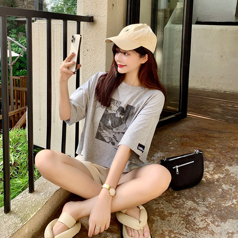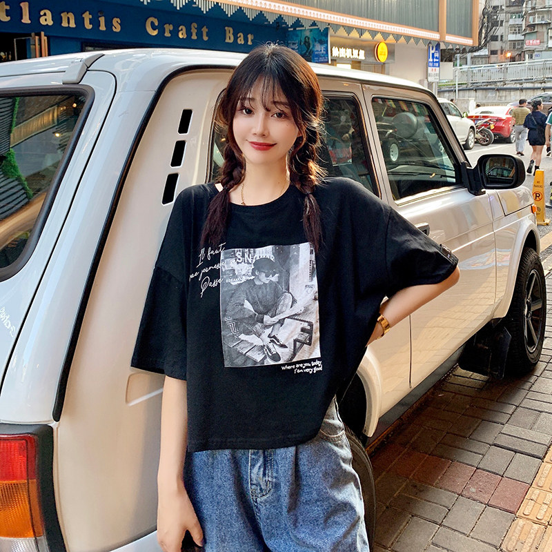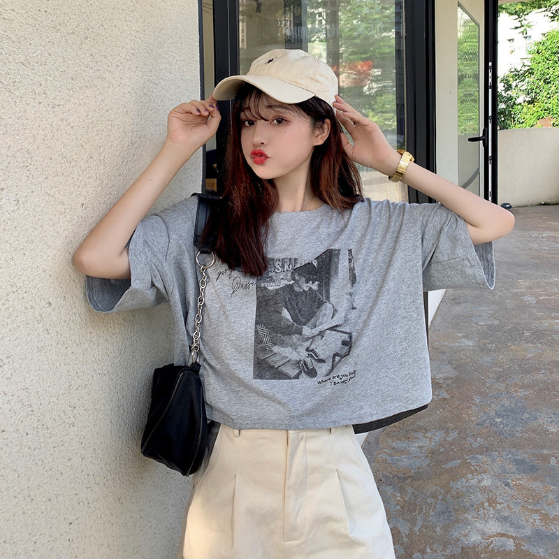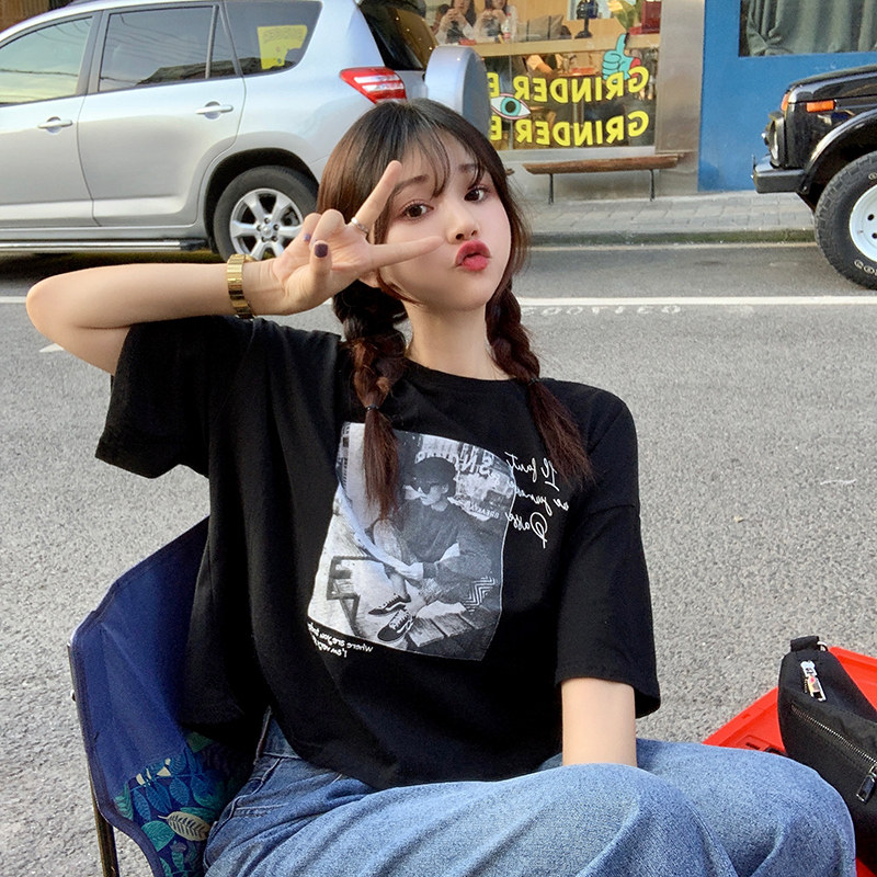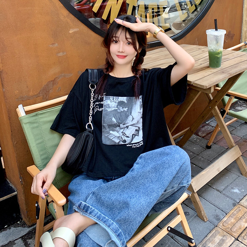 夏季2021新款短袖t恤男士潮牌韩版潮流宽松圆领棉布料好搭衣服
