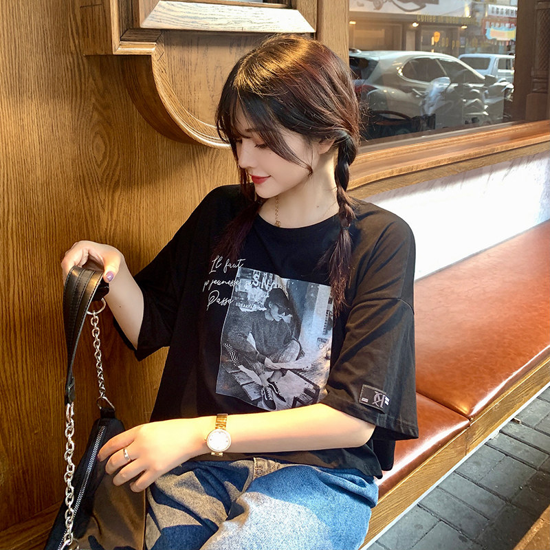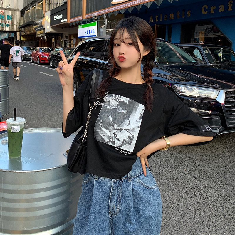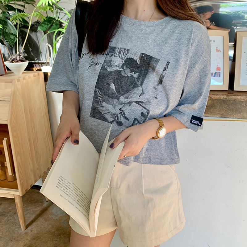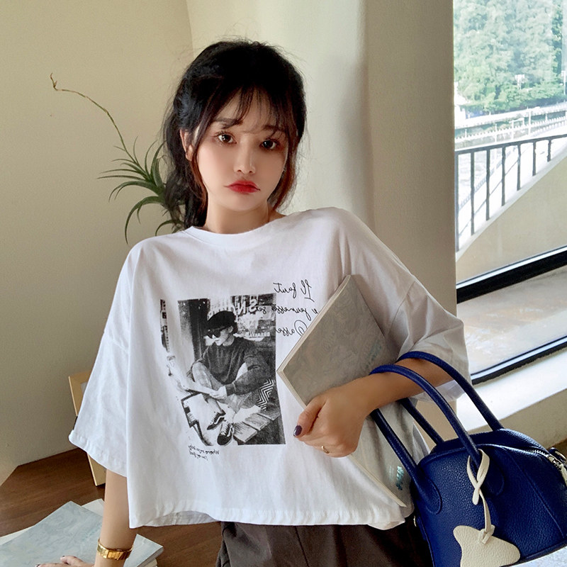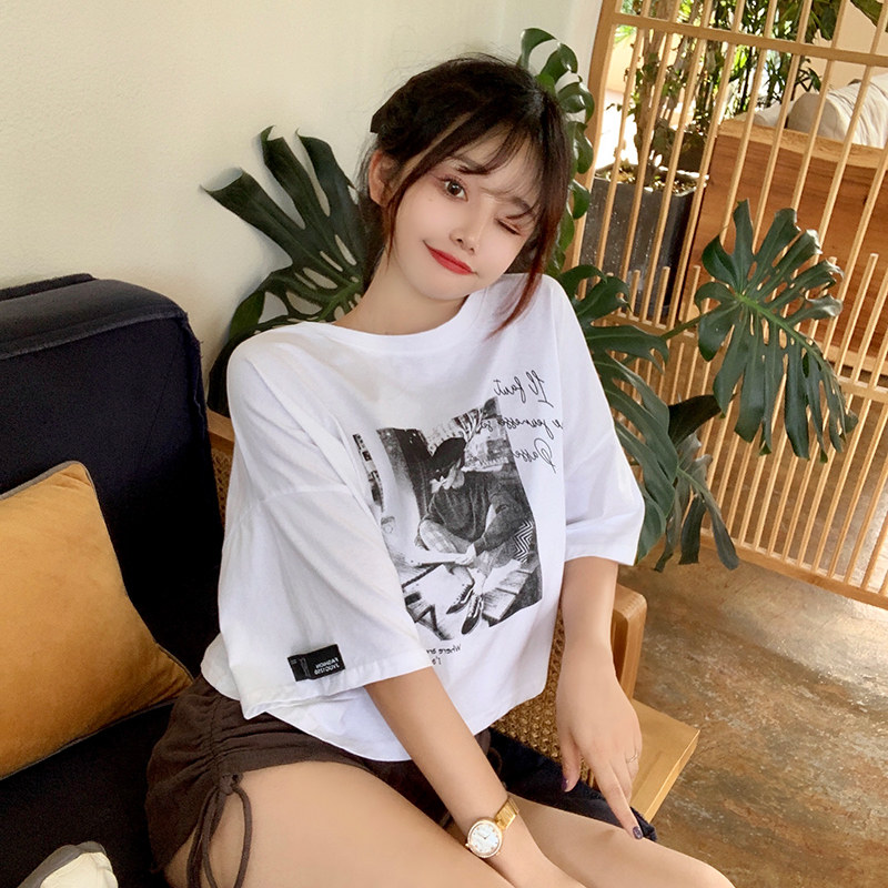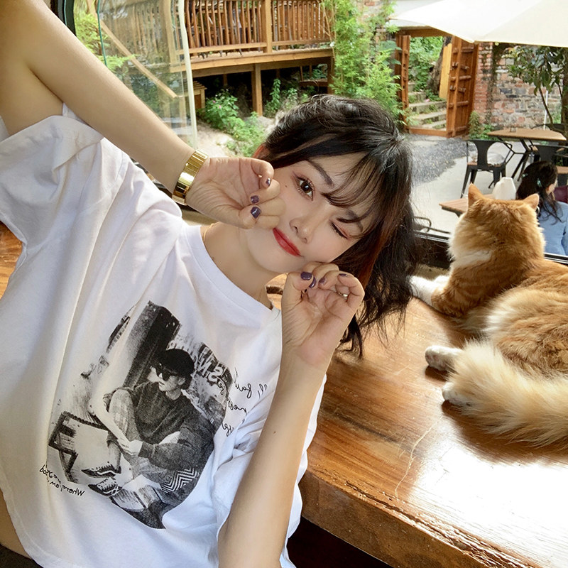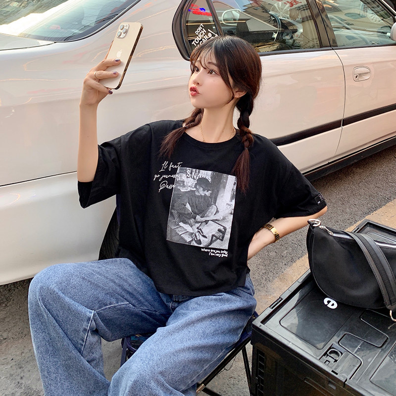 夏季2021新款短袖t恤男士潮牌韩版潮流宽松圆领棉布料好搭衣服