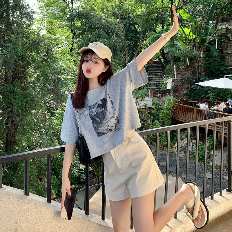 2021夏季新款新型蚂蚁皱布料短袖短裤潮流印花运动时尚休闲套装男