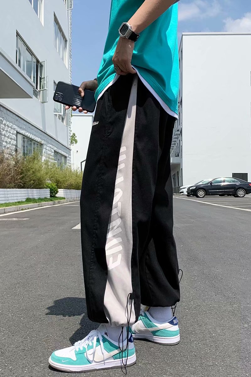 2021男式柔软布料中腰休闲现货青少年黑色字母弹力裤休闲裤五分裤
