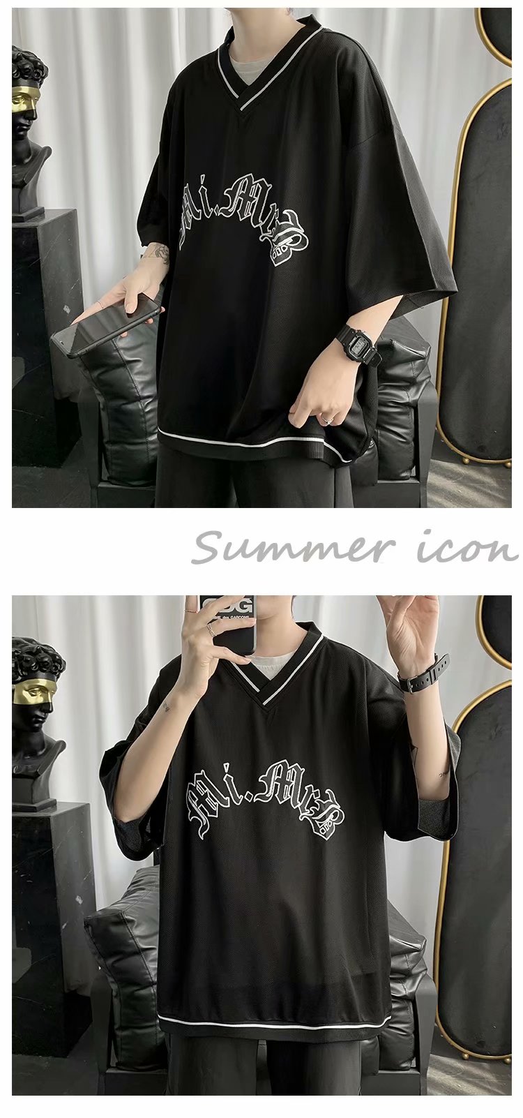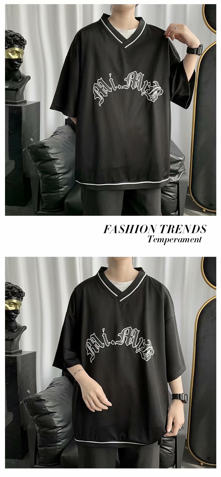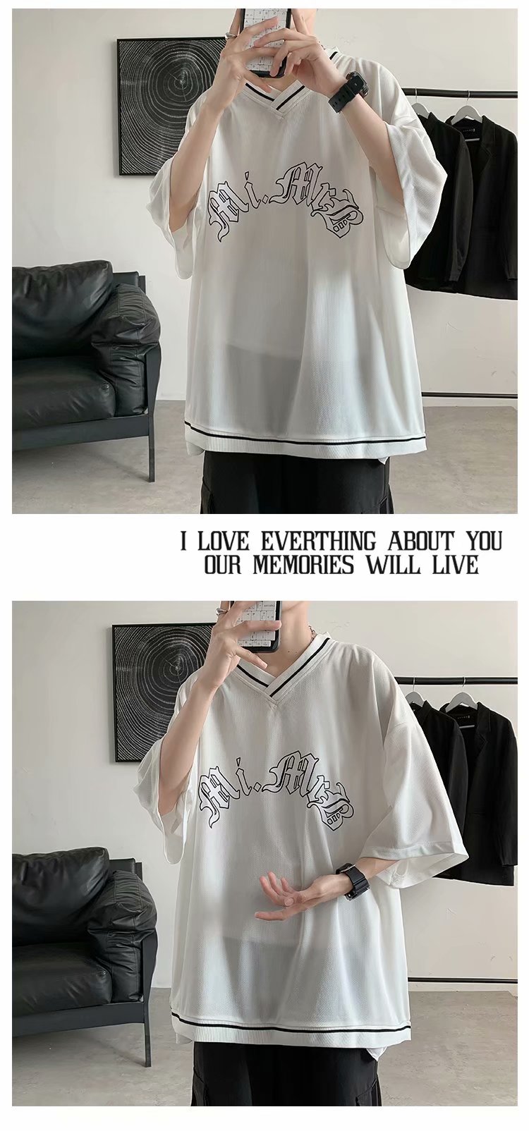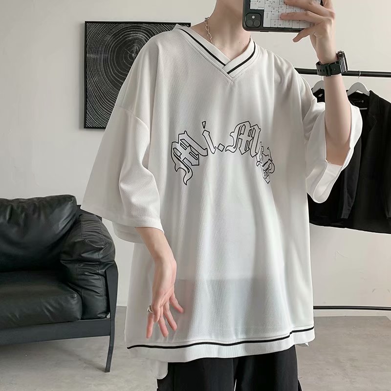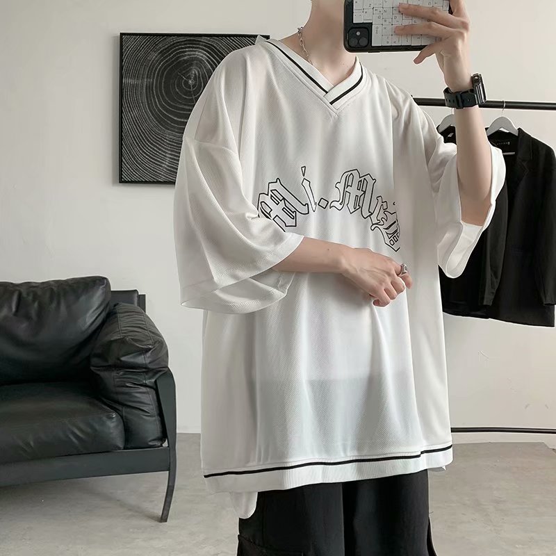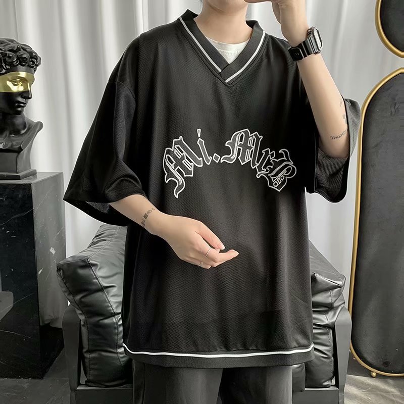 夏季2021新款短袖t恤男士潮牌韩版潮流宽松圆领棉布料好搭衣服