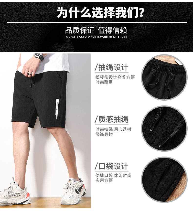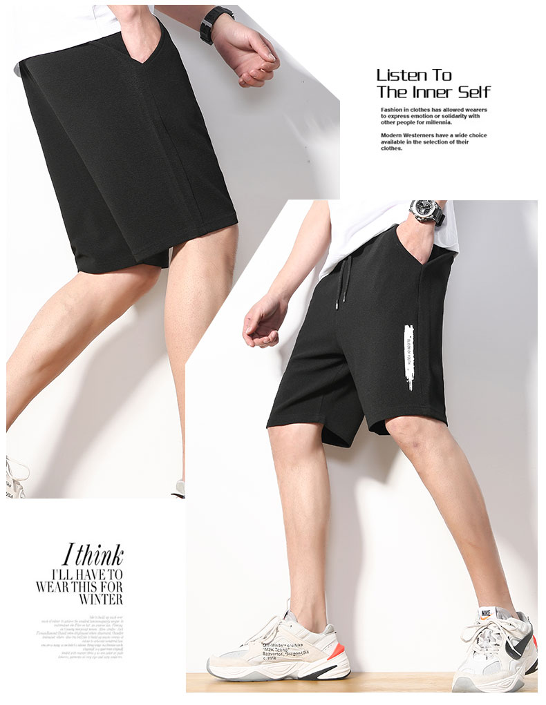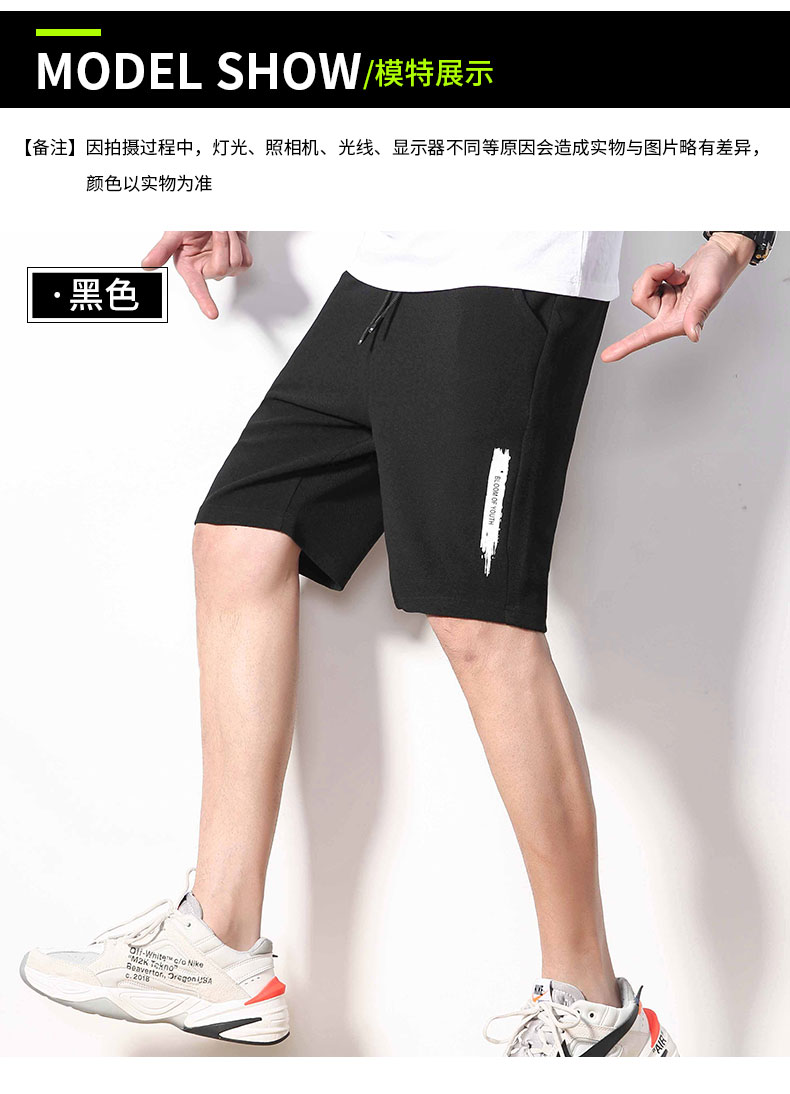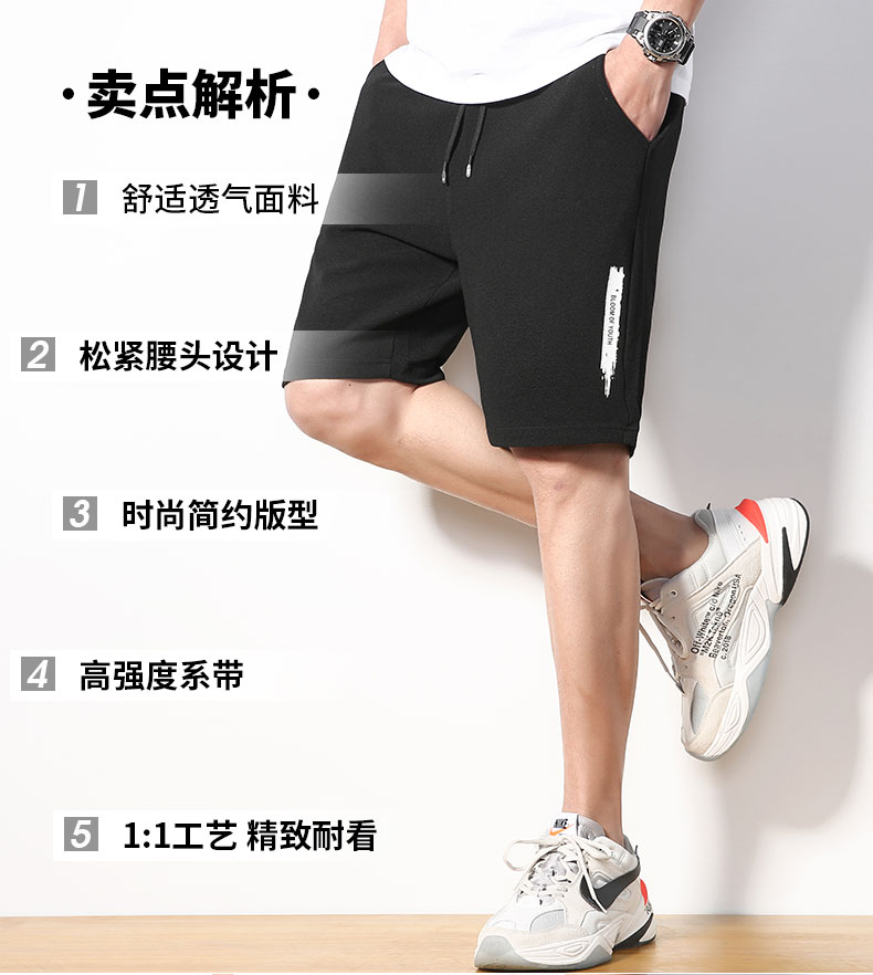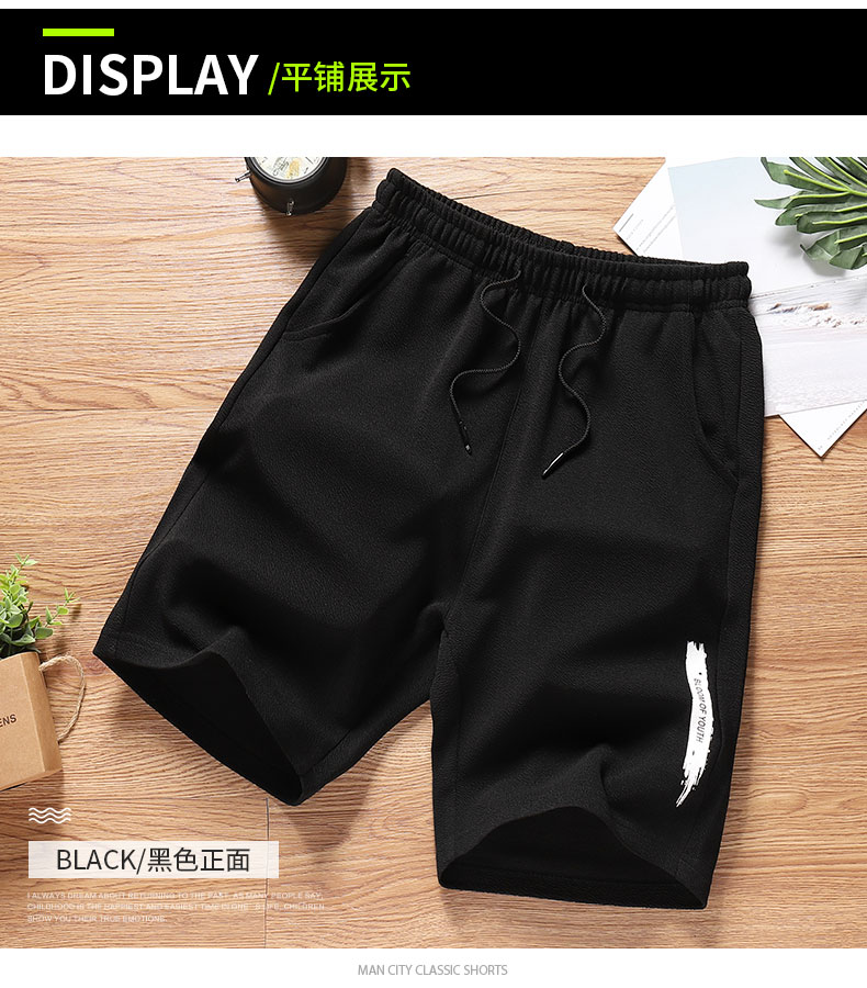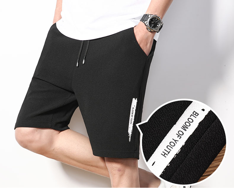 2021男式柔软布料中腰休闲现货青少年黑色字母弹力裤休闲裤五分裤