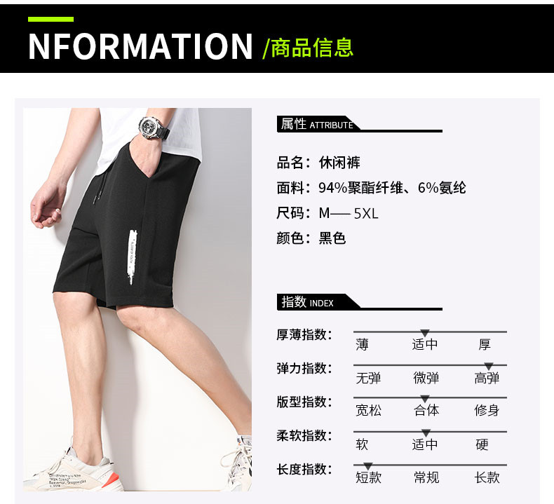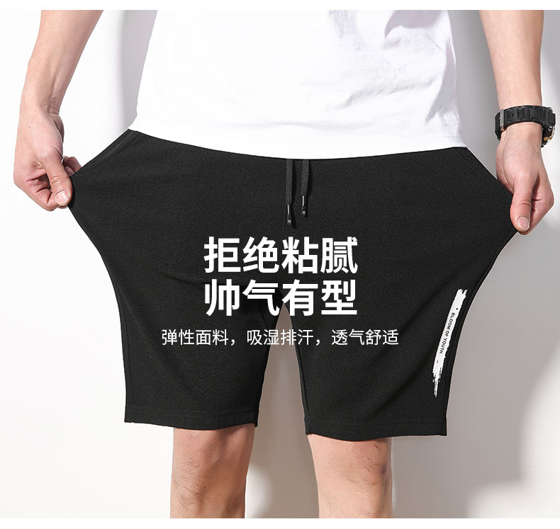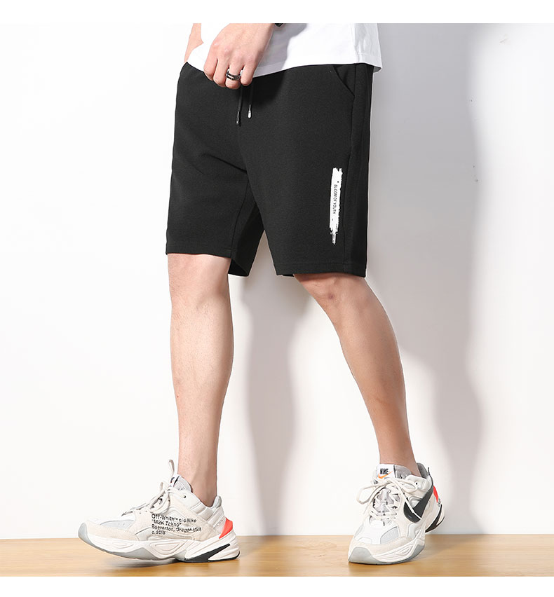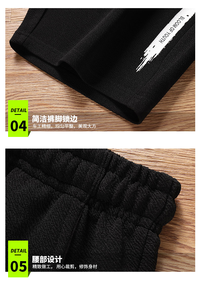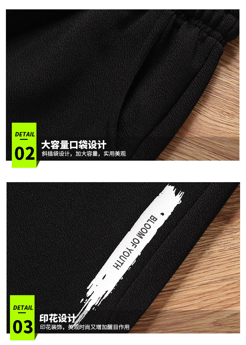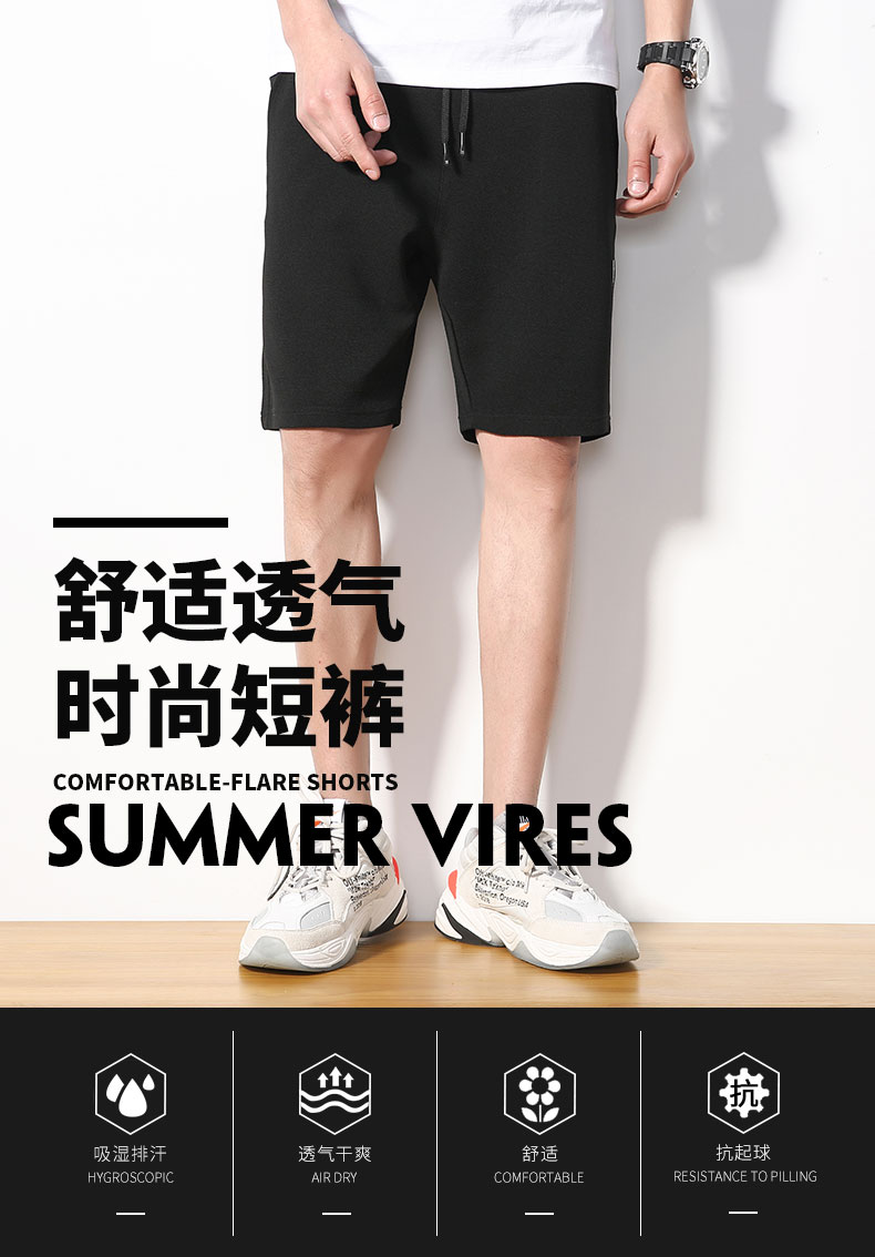 2021男式柔软布料中腰休闲现货青少年黑色字母弹力裤休闲裤五分裤