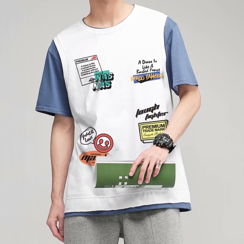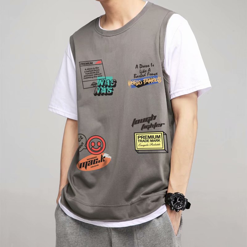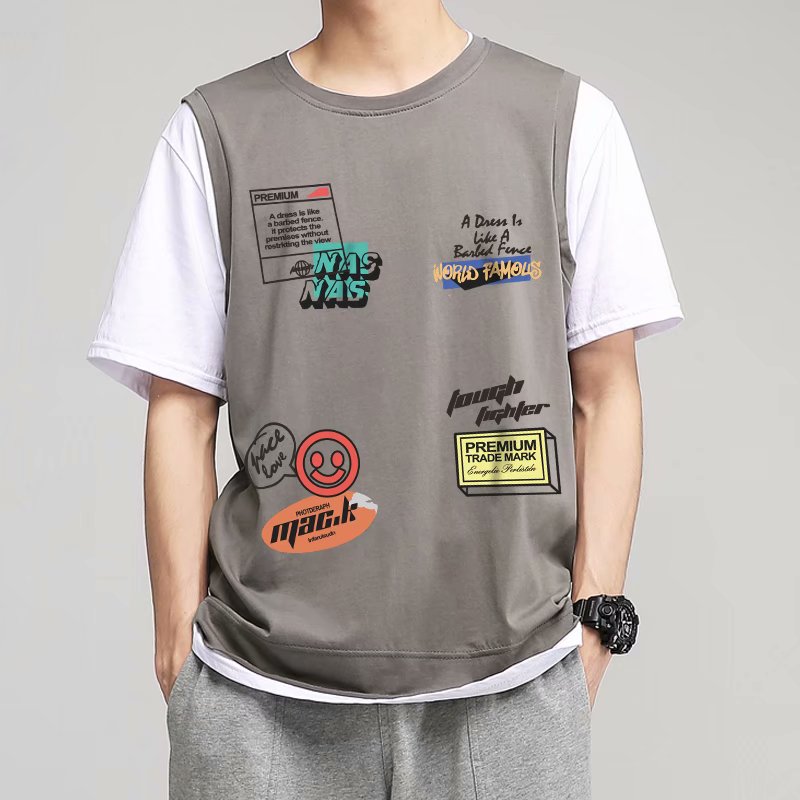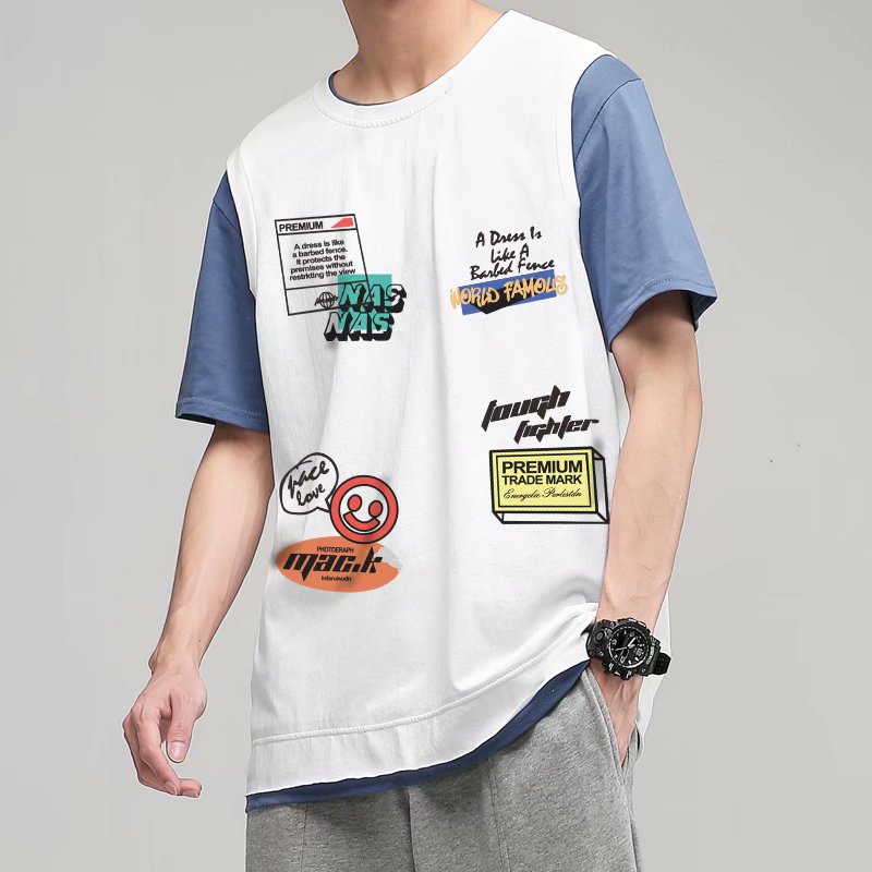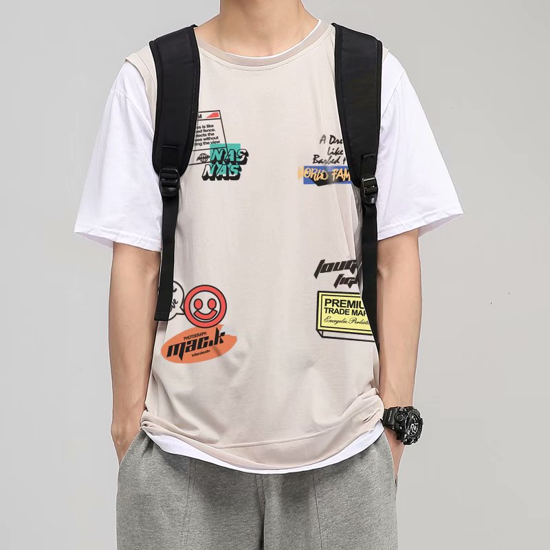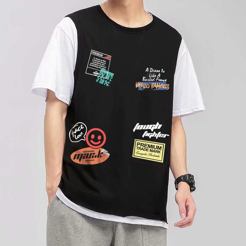 夏季2021新款短袖t恤男士潮牌韩版潮流宽松圆领棉布料好搭衣服