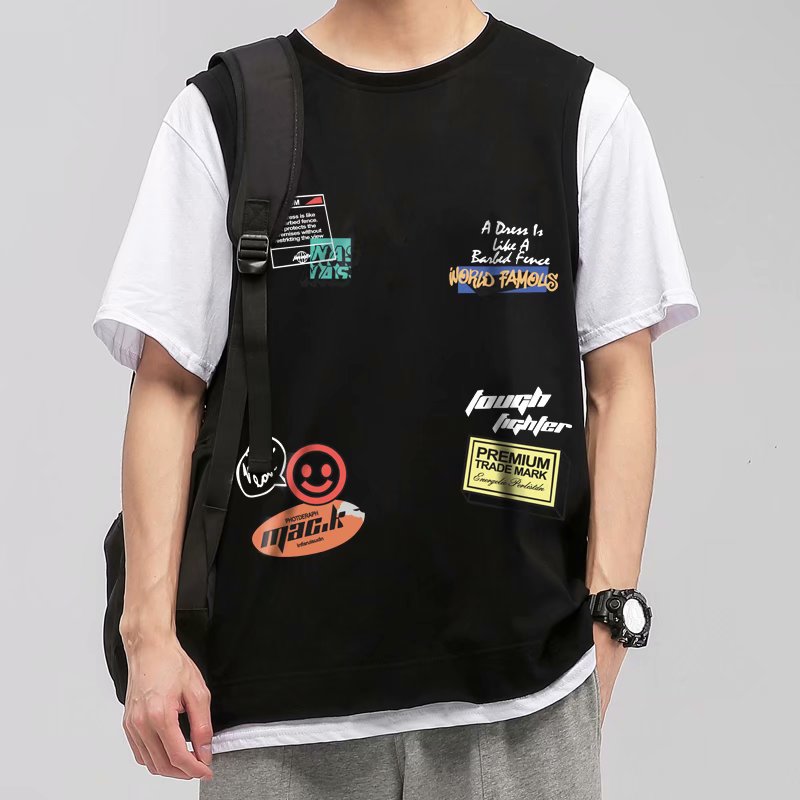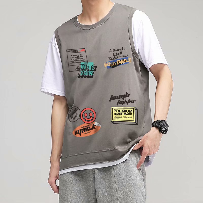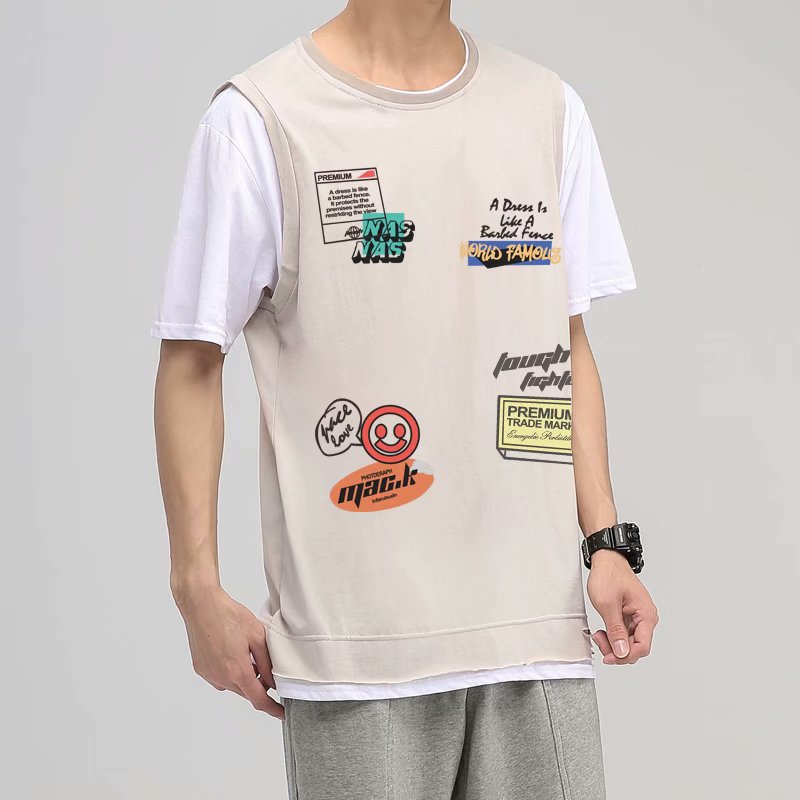 2021夏季新款新型蚂蚁皱布料短袖短裤潮流印花运动时尚休闲套装男