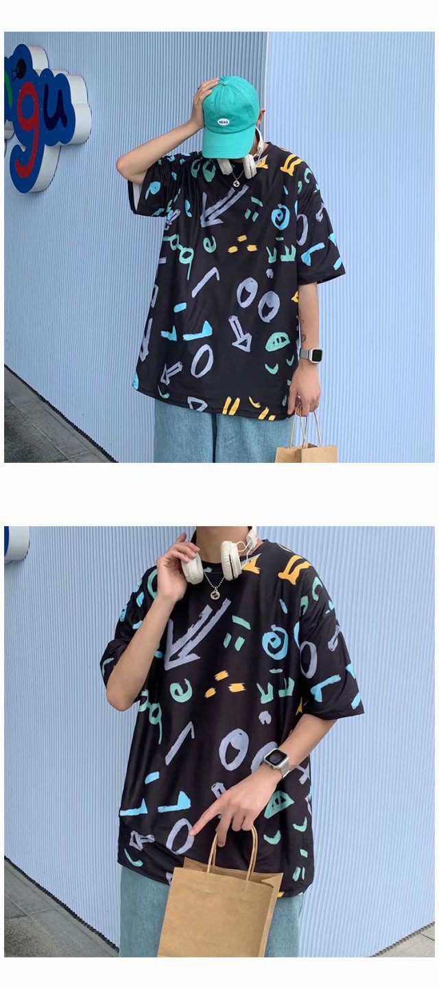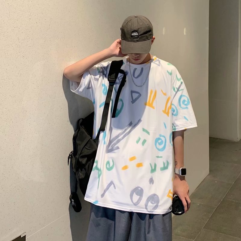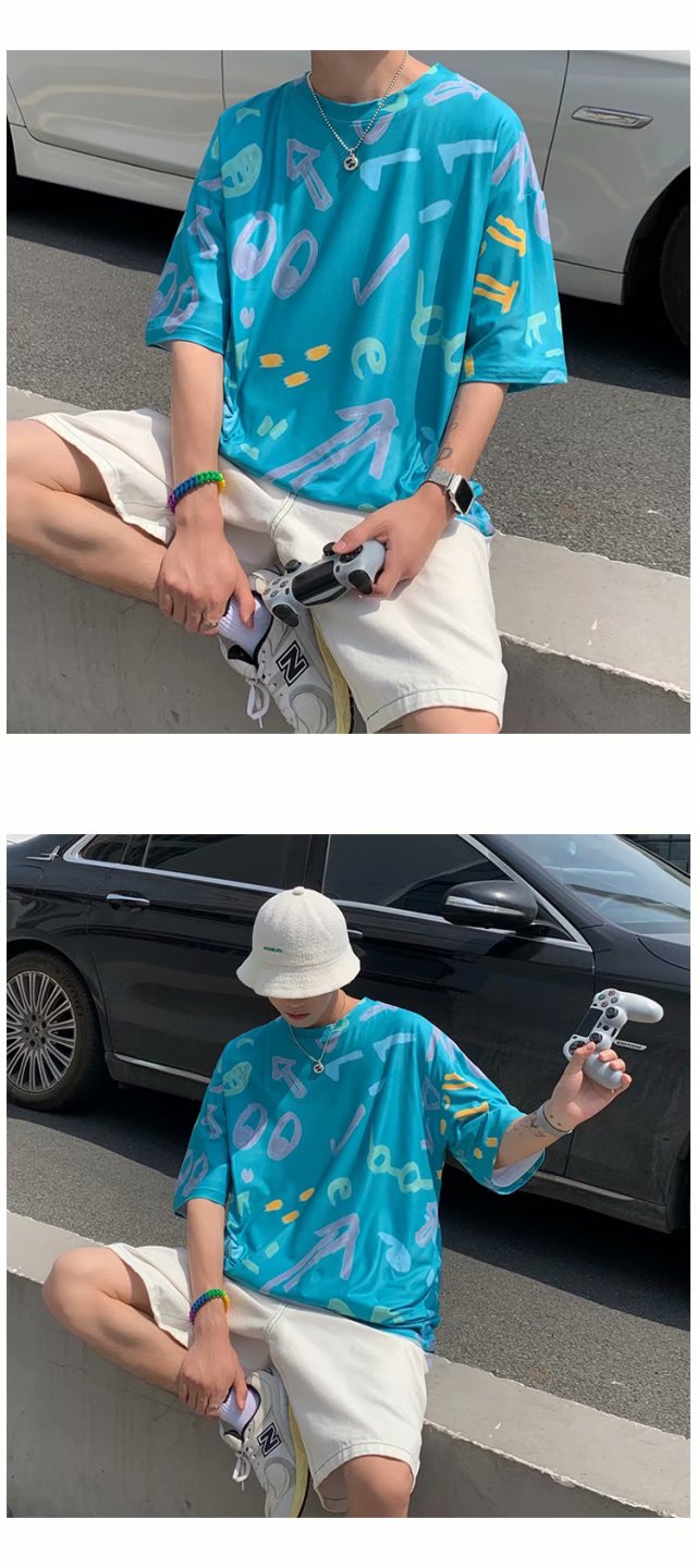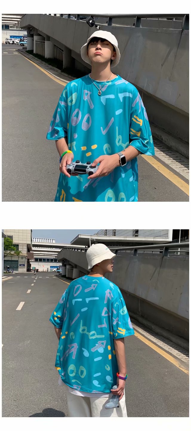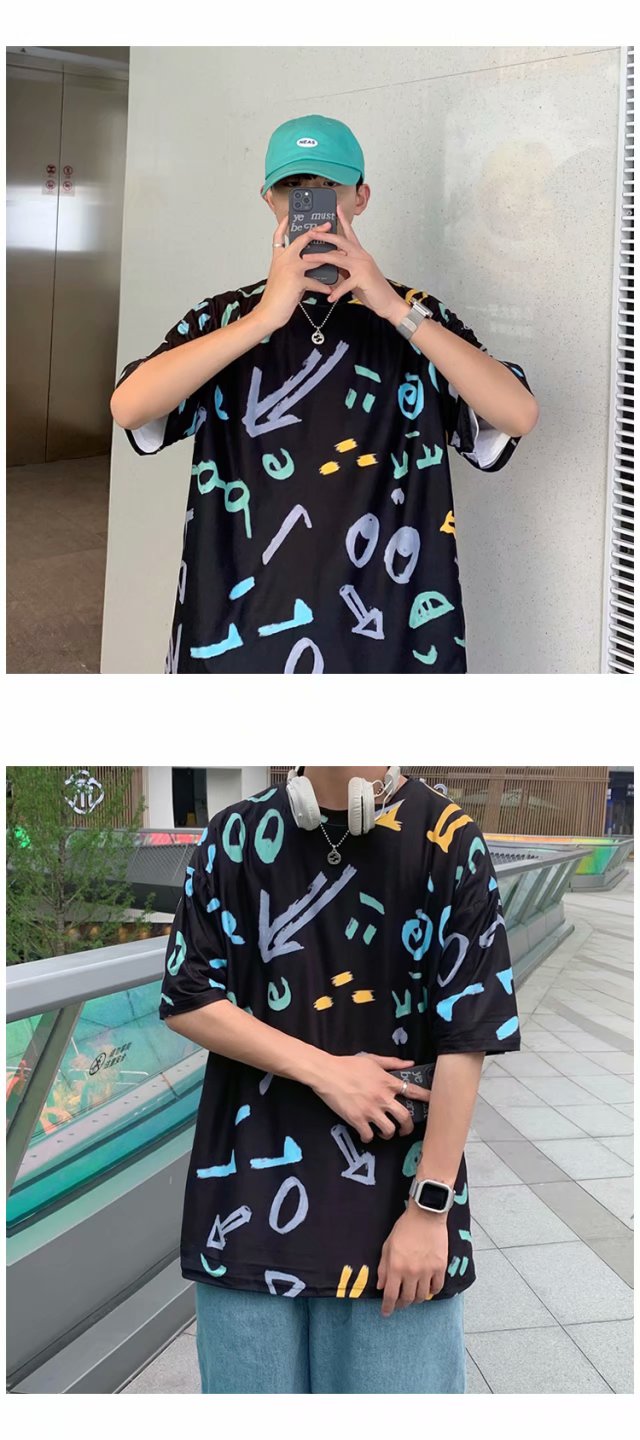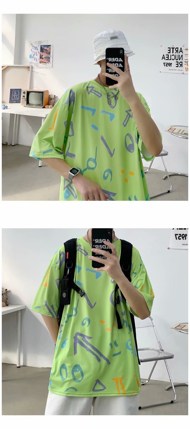 夏季2021新款短袖t恤男士潮牌韩版潮流宽松圆领棉布料好搭衣服
