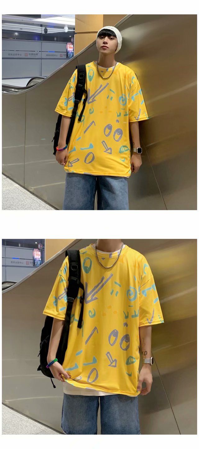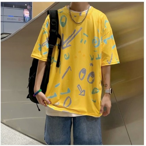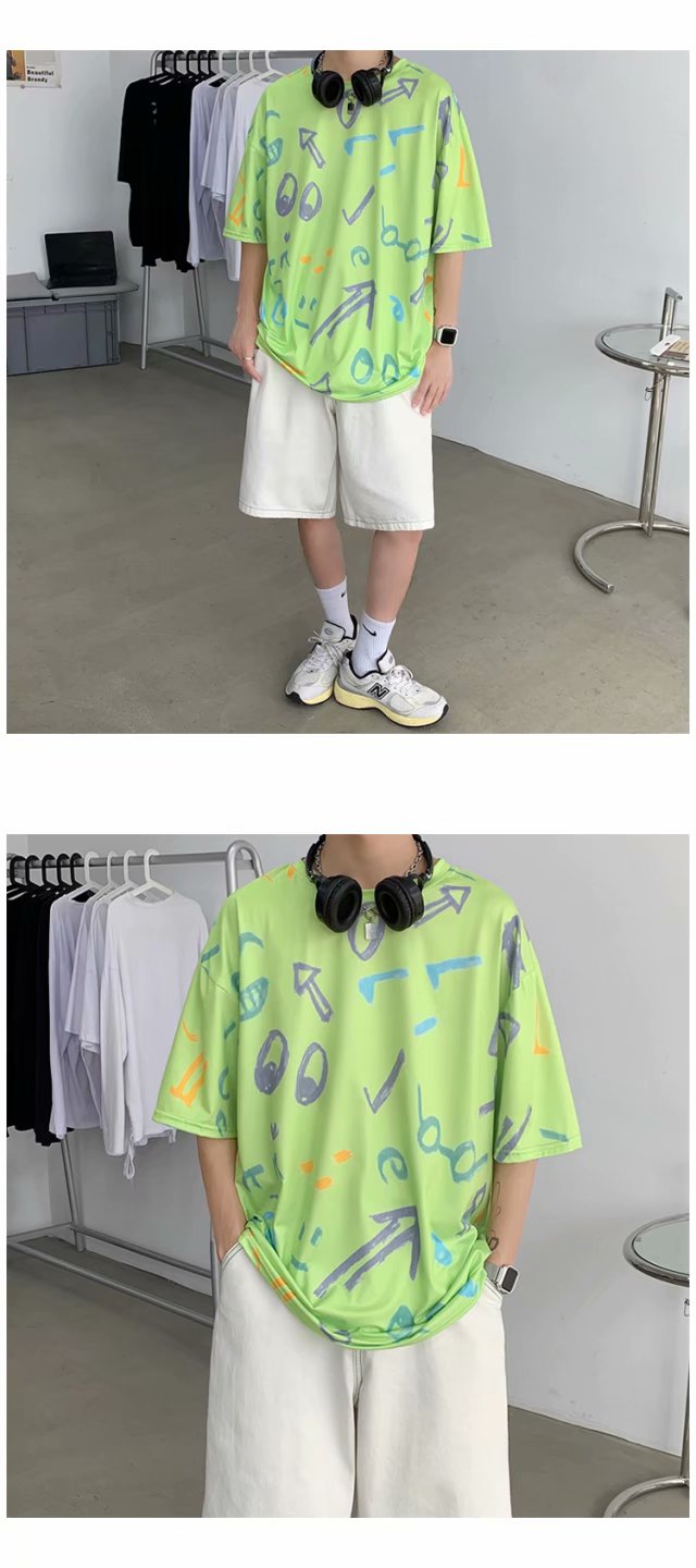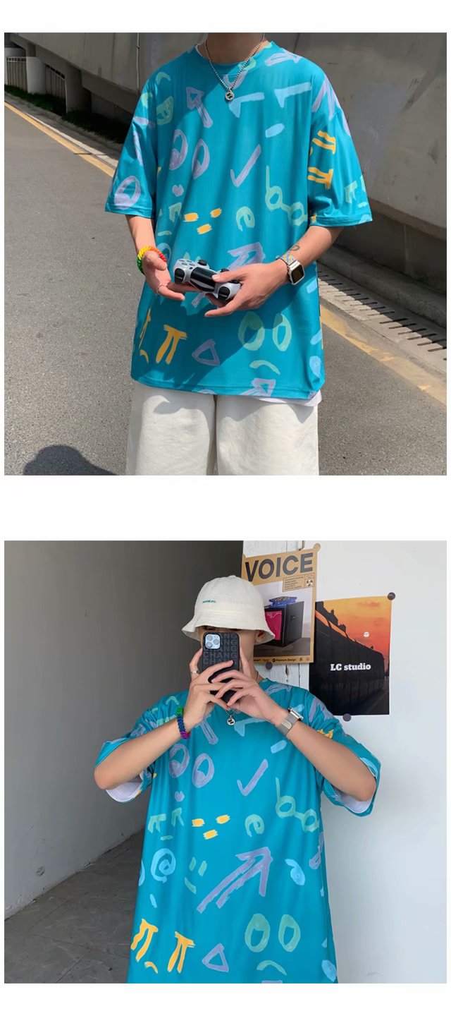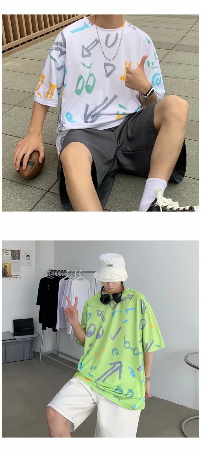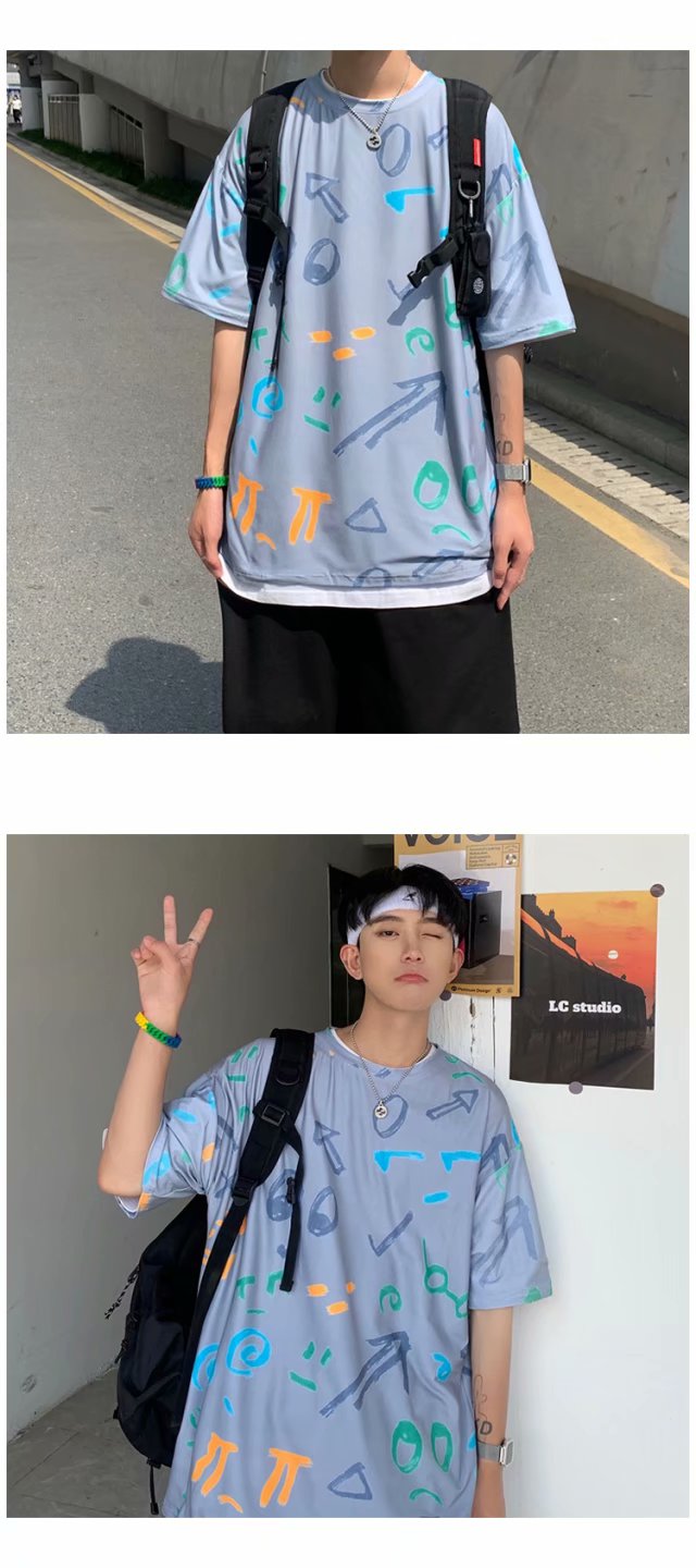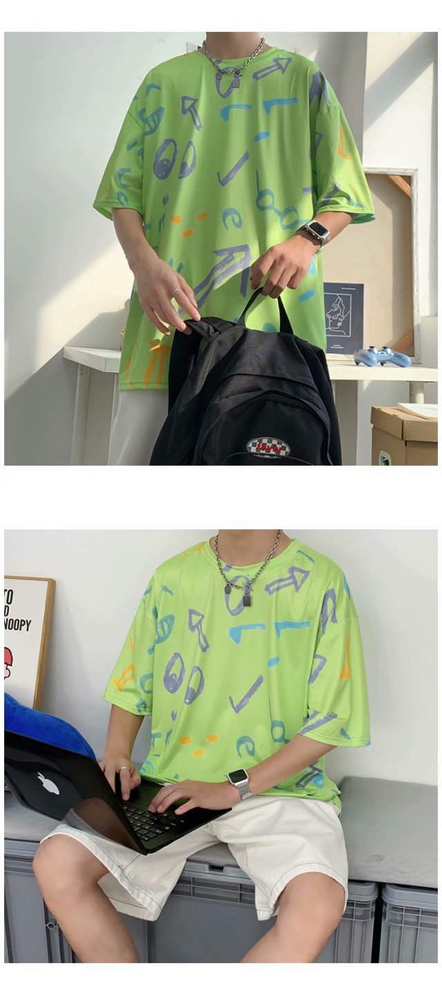 夏季2021新款短袖t恤男士潮牌韩版潮流宽松圆领棉布料好搭衣服