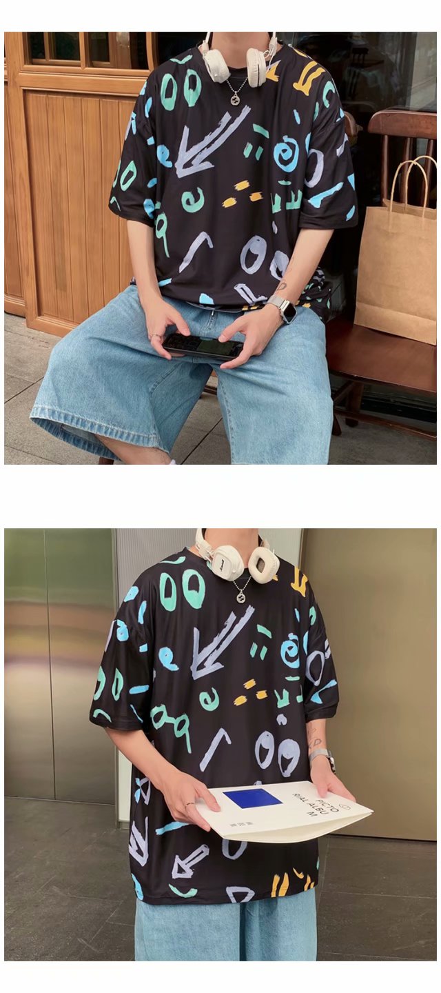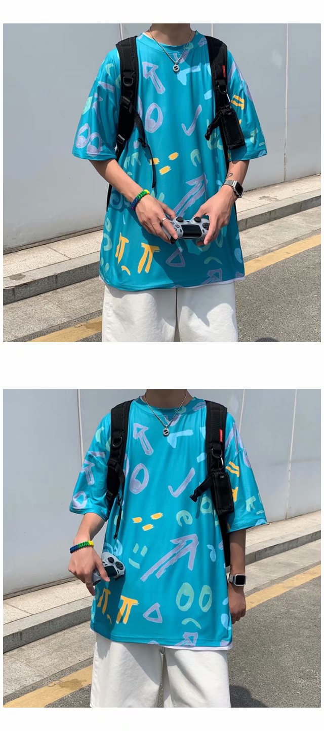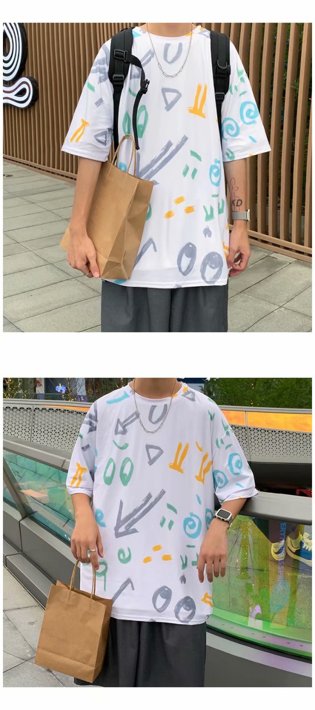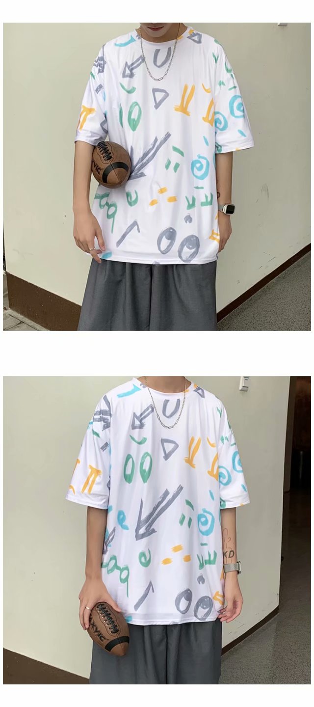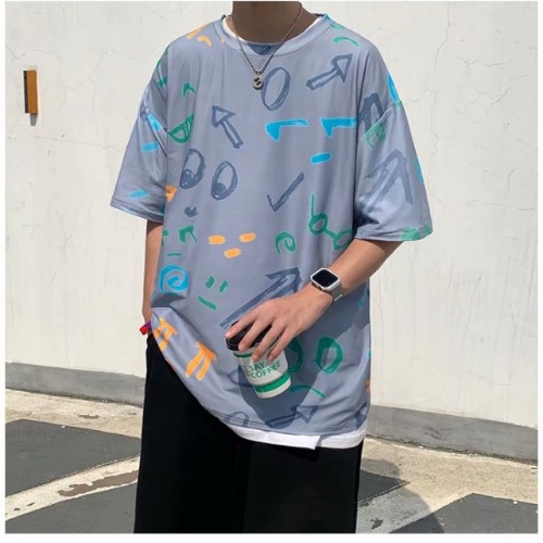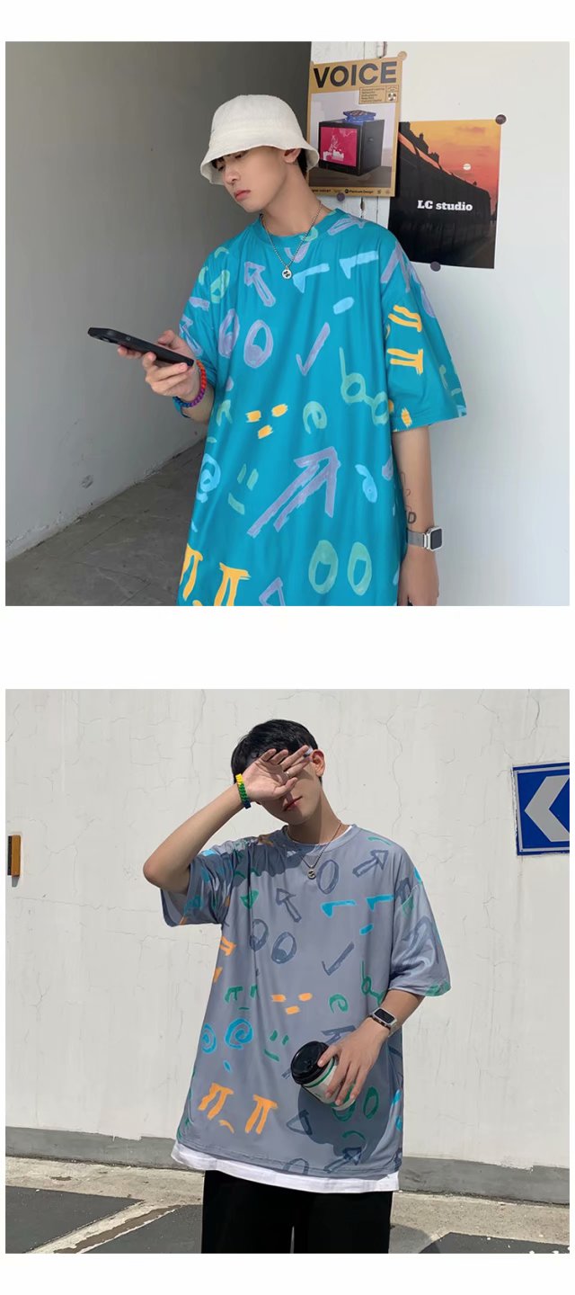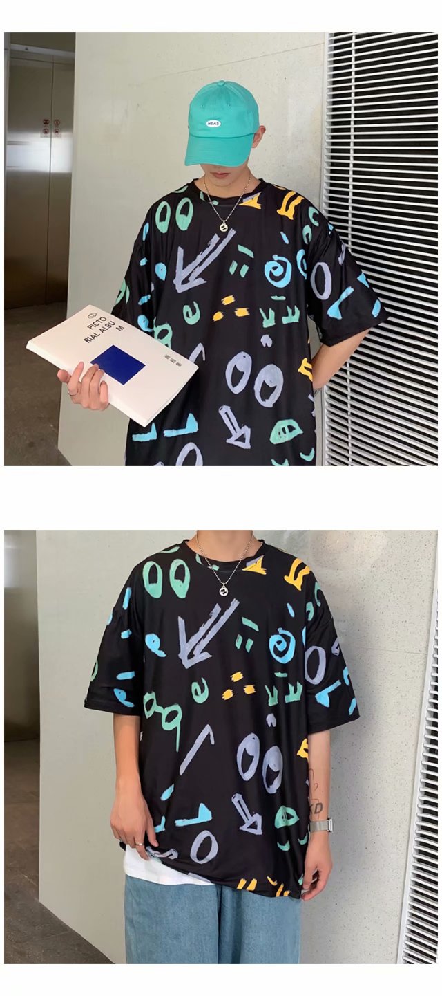 夏季2021新款短袖t恤男士潮牌韩版潮流宽松圆领棉布料好搭衣服
