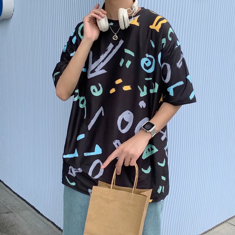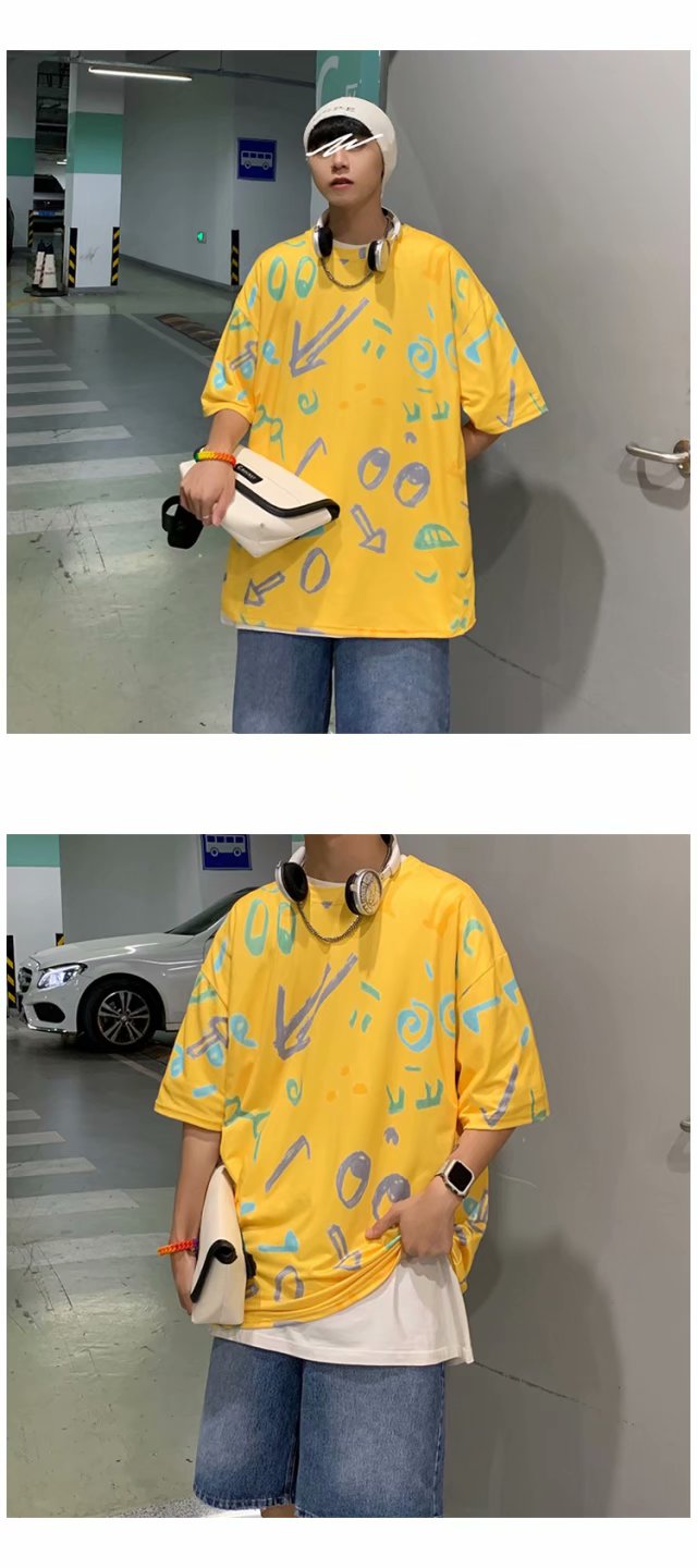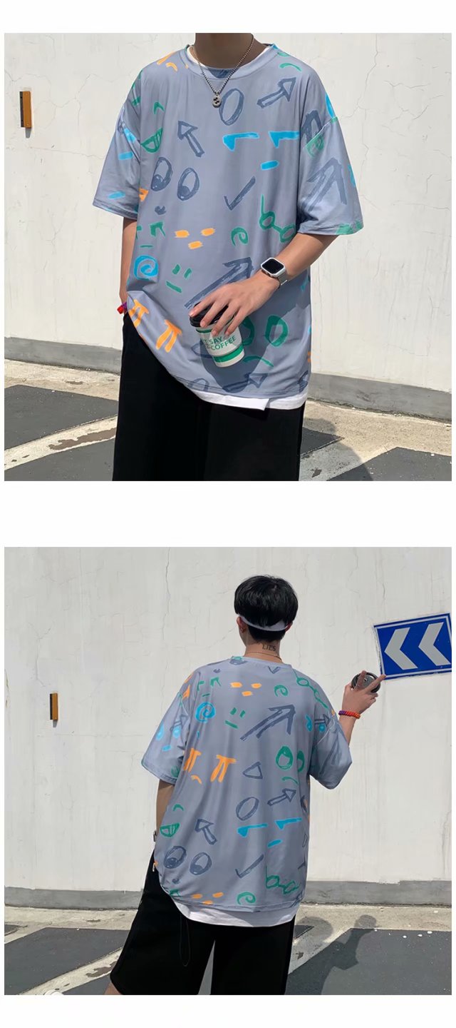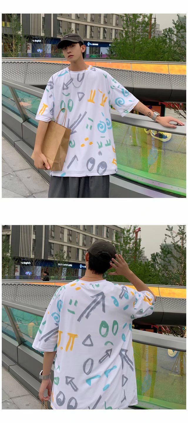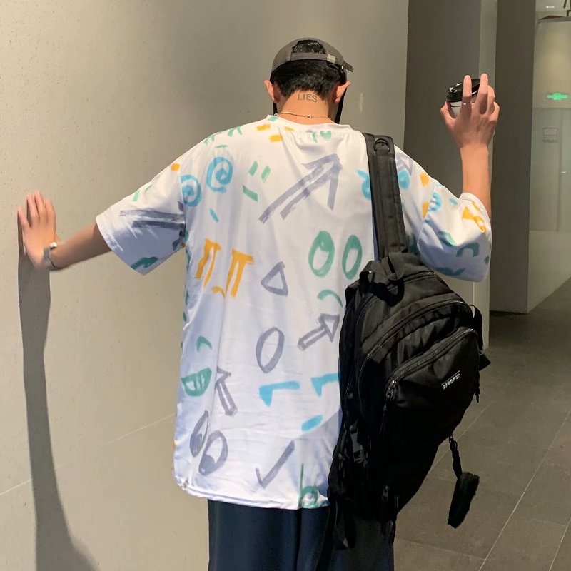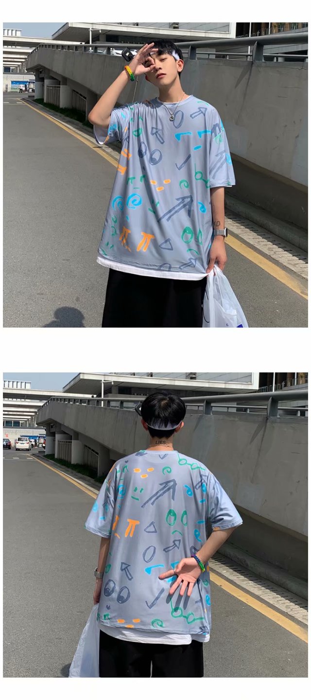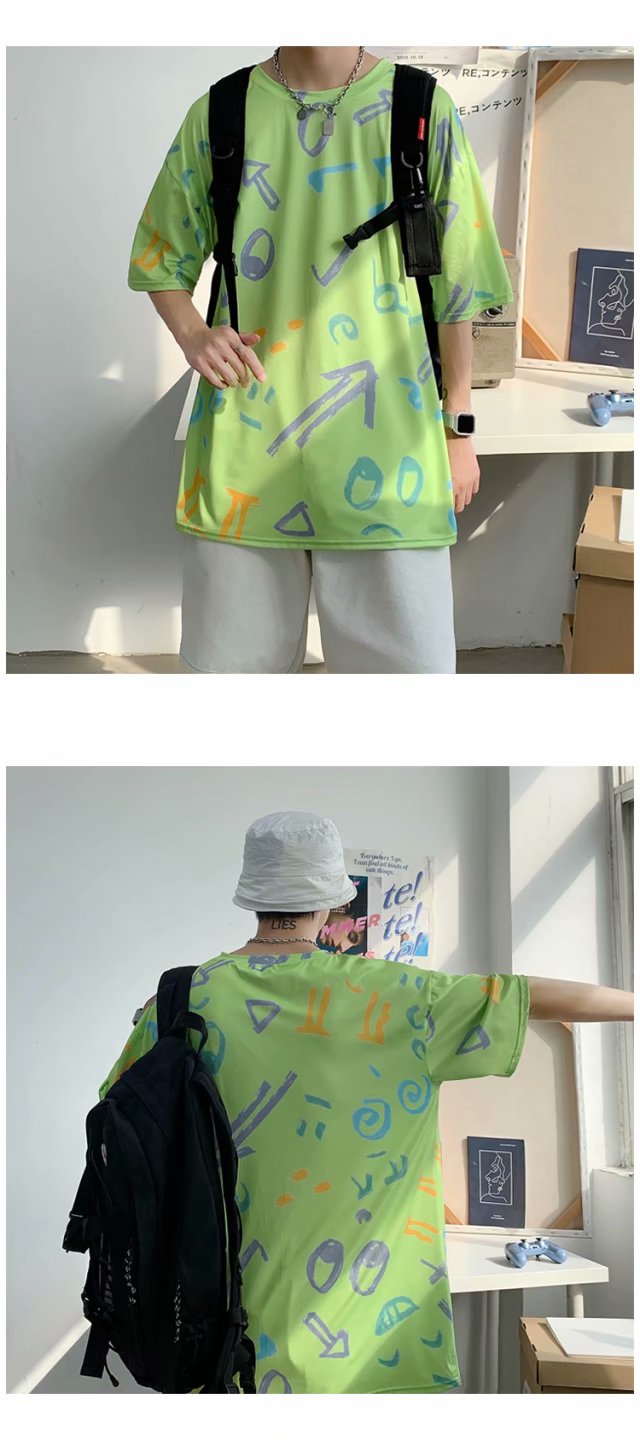 夏季2021新款短袖t恤男士潮牌韩版潮流宽松圆领棉布料好搭衣服